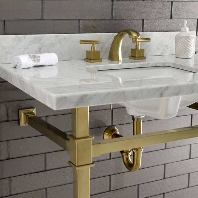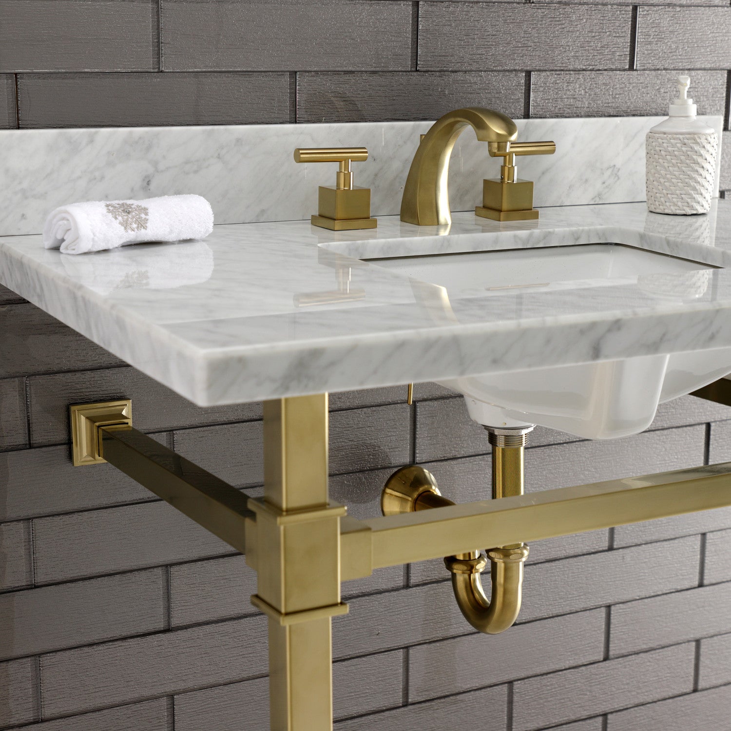 Fauceture KVPB36MSQ7 36-Inch Carrara Marble Console Sink, Marble White/Brushed Brass