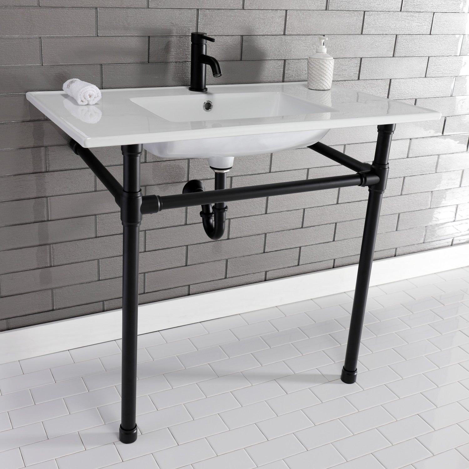Dreyfuss KVPB3722710 37-Inch Ceramic Console Sink Set, White/Matte Black