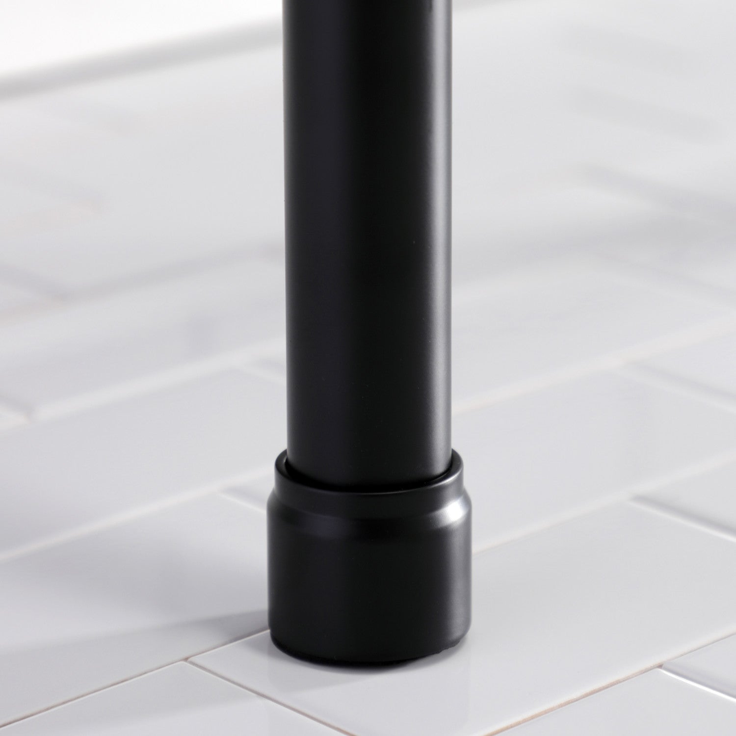 With a beautiful ceramic counter top, this console sink set is a long lasting, durable, and elegant addition to your bathroom. Solid ceramic sinks and tops like the LBT-series top in this listing are finished with a glossy glaze on the top and sink basin interior, making for a pristine, stain-resistant surface and glistening finish that is easily maintained. The underside and basin exterior are unglazed/unfinished and coated with a matte white protective sealant that prevents moisture absorption and staining. Solid ceramic pieces cannot be glazed on all sides, because the nature of ceramic material requires a minimum surface area be left raw during the glaze firing process so the piece does not explode. Also for your convenience, anti-slip rubber pads are included with the stainless steel legs to ensure steadiness. Water supply kit, drain assembly, and the faucet are sold separately.