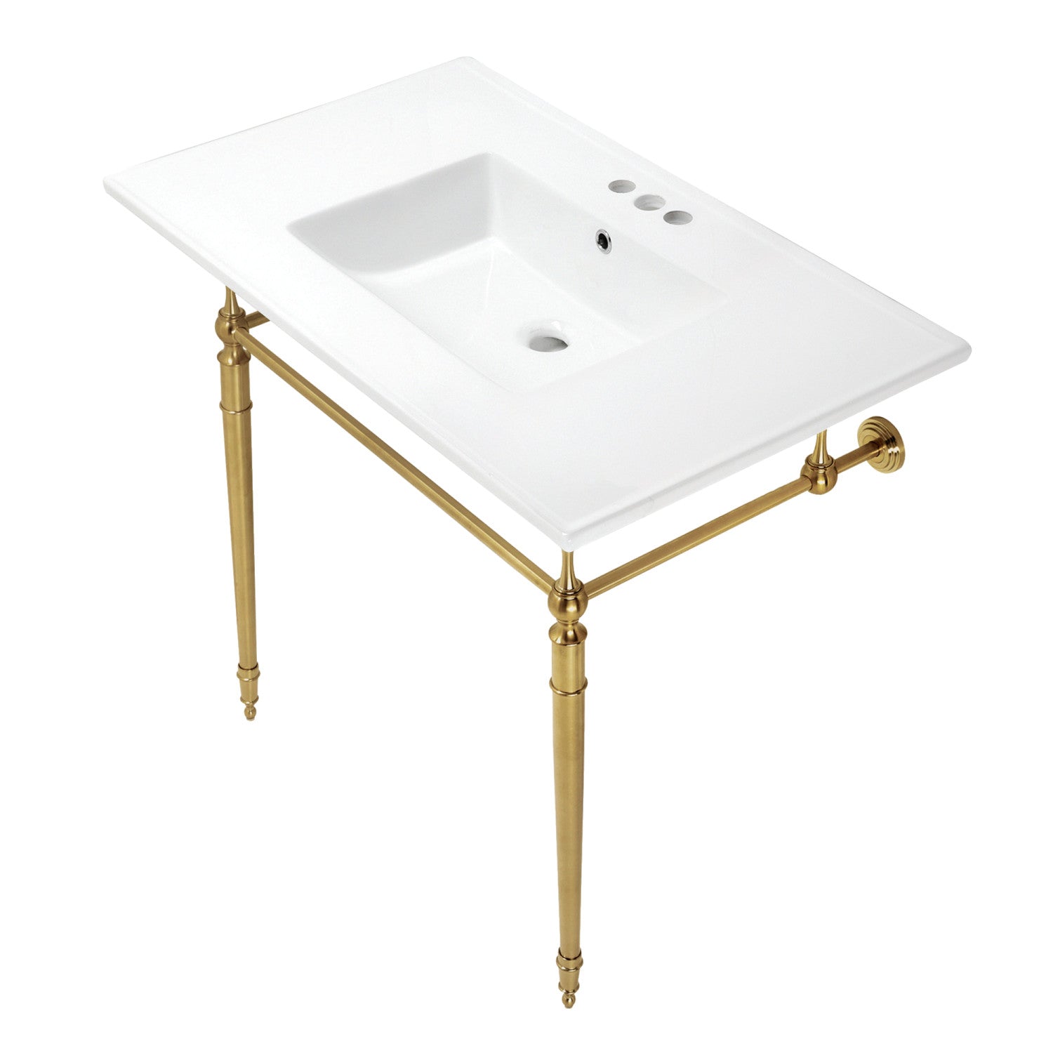 Edwardian KVPB37227W4BB 37-Inch Ceramic Console Sink Set, White/Brushed Brass