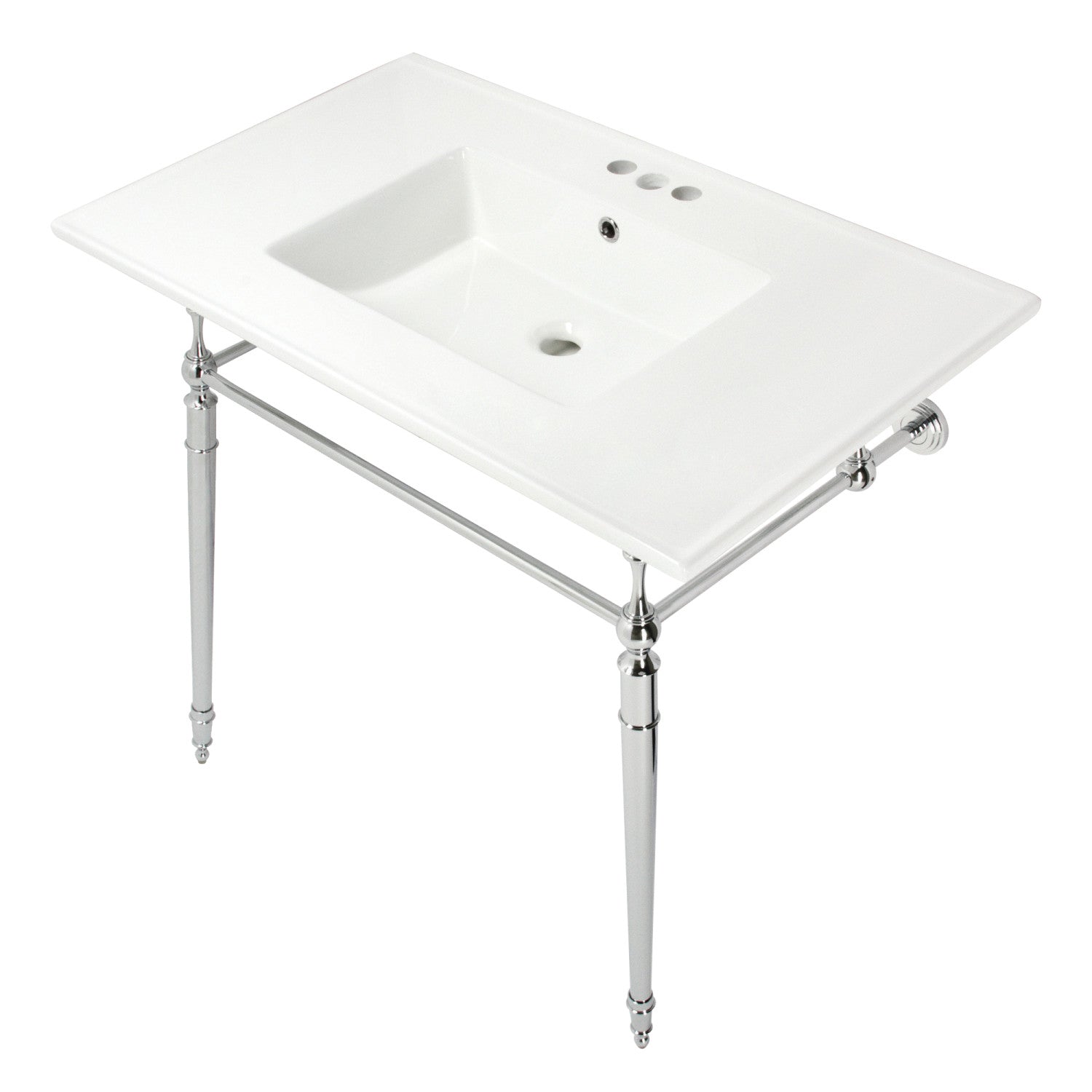 Edwardian KVPB37227W4CP 37-Inch Ceramic Console Sink Set, White/Polished Chrome