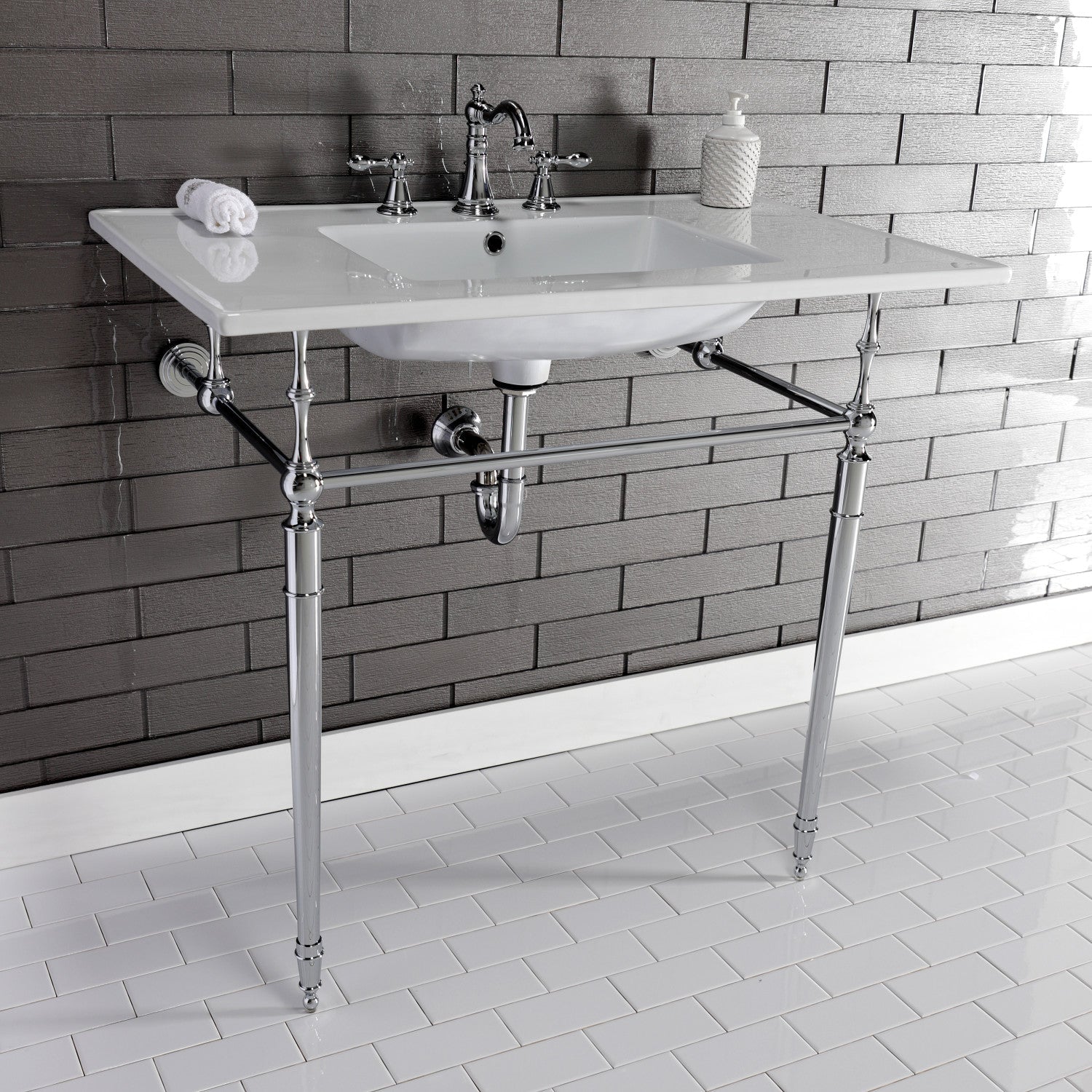 Edwardian KVPB37227W8CP 37-Inch Ceramic Console Sink Set, White/Polished Chrome
