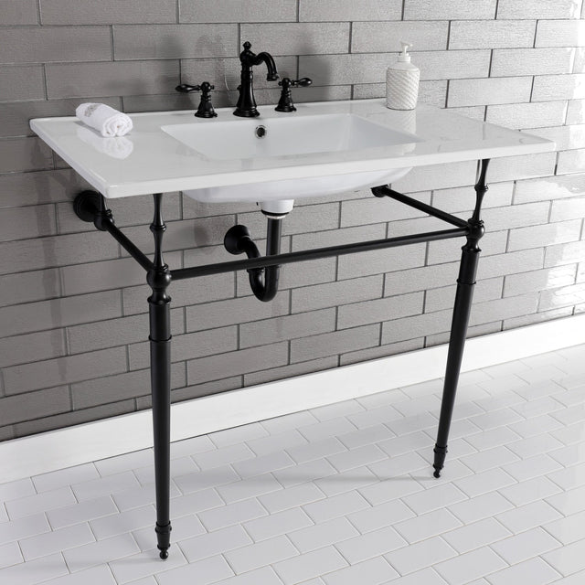 Edwardian KVPB37227W8MB 37-Inch Ceramic Console Sink Set, White/Matte Black