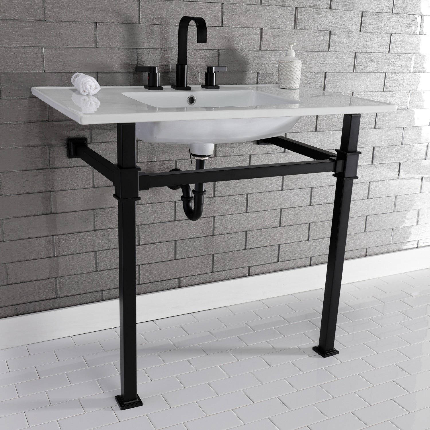 Fauceture KVPB37228Q0 37-Inch Ceramic Console Sink Set, White/Matte Black