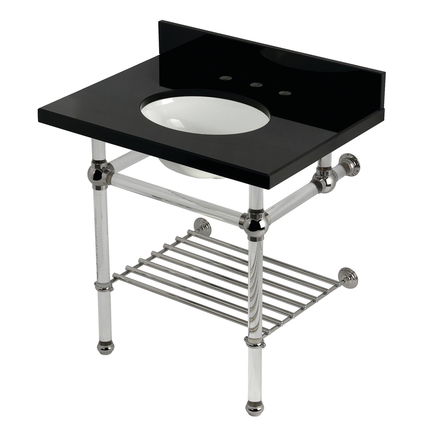 Templeton KVPK3030KAB6 30-Inch Console Sink with Acrylic Legs (8-Inch, 3 Hole), Black Granite/Polished Nickel