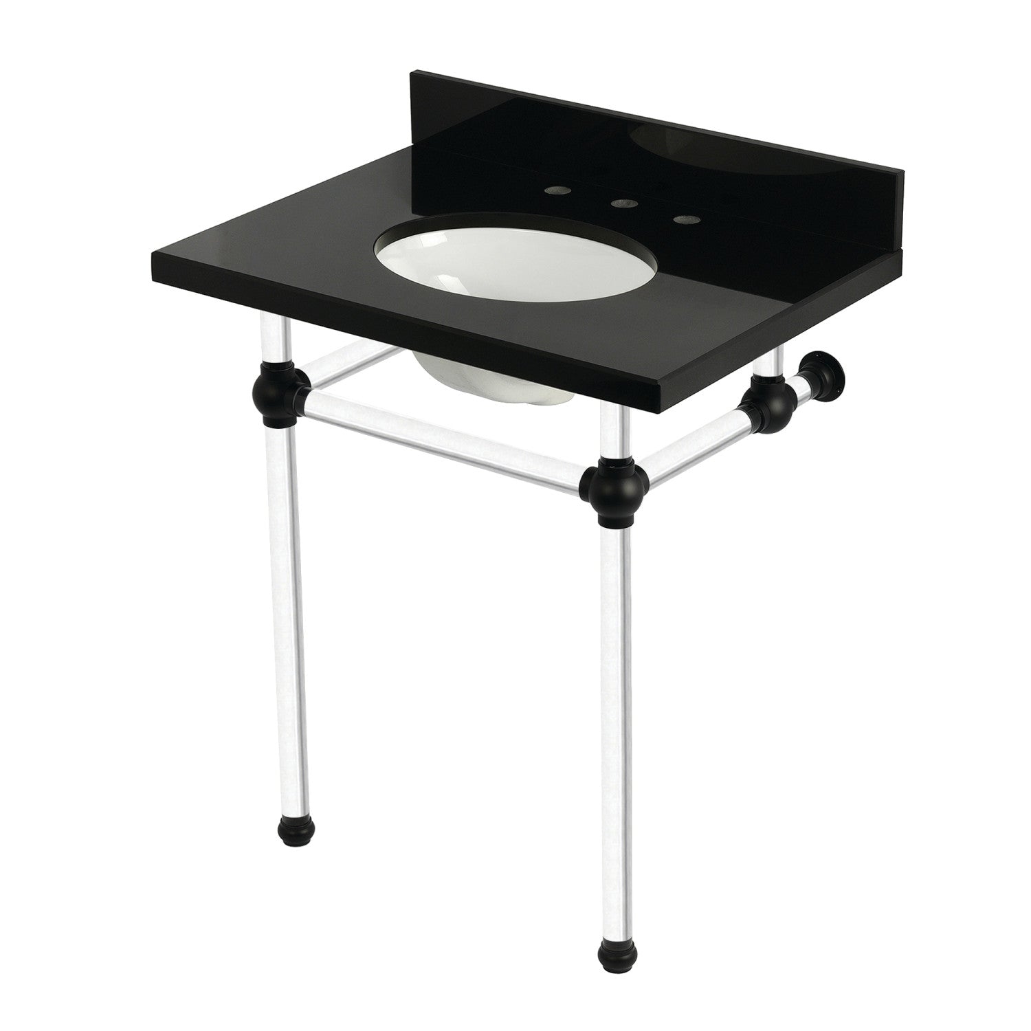 Templeton KVPK30KA0 30-Inch Black Granite Console Sink with Acrylic Legs, Black Granite/Matte Black