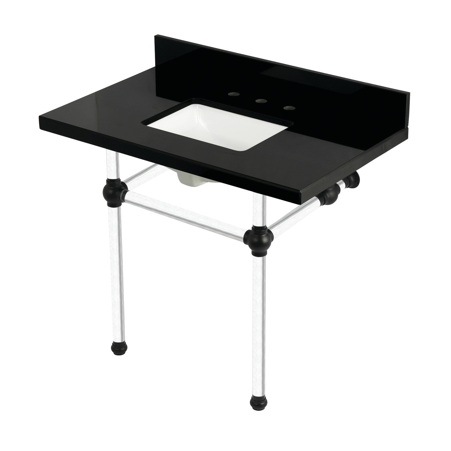 Templeton KVPK3630KASQ0 36-Inch Black Granite Console Sink with Acrylic Legs, Black Granite/Matte Black