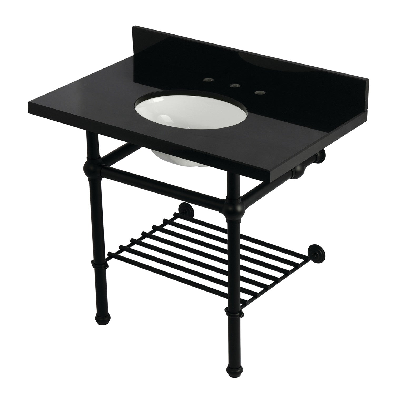 Templeton KVPK3630KBB0 36-Inch Console Sink with Brass Legs (8-Inch, 3 Hole), Black Granite/Matte Black