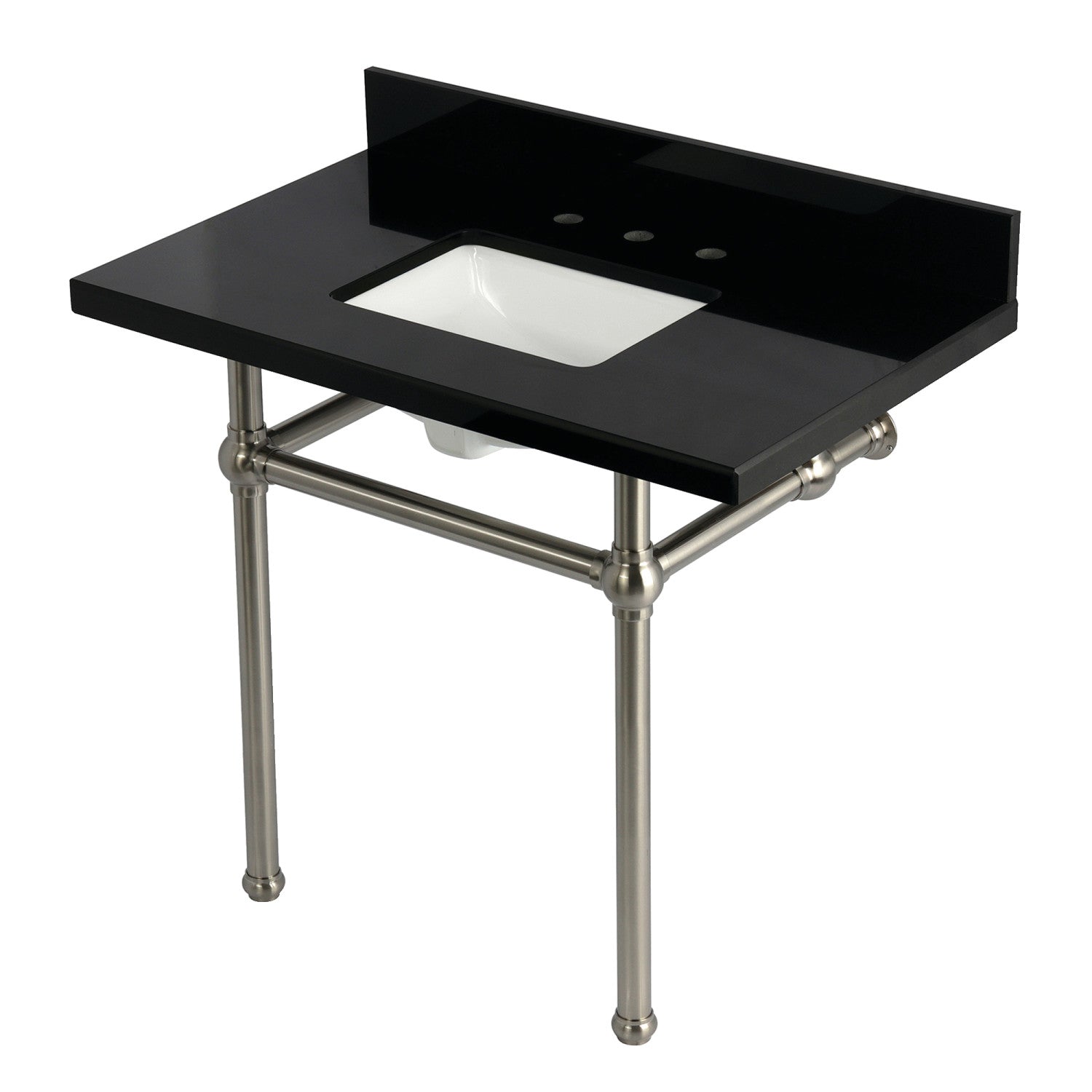 Templeton KVPK3630KBSQ8 36-Inch Black Granite Console Sink with Brass Legs, Black Granite/Brushed Nickel