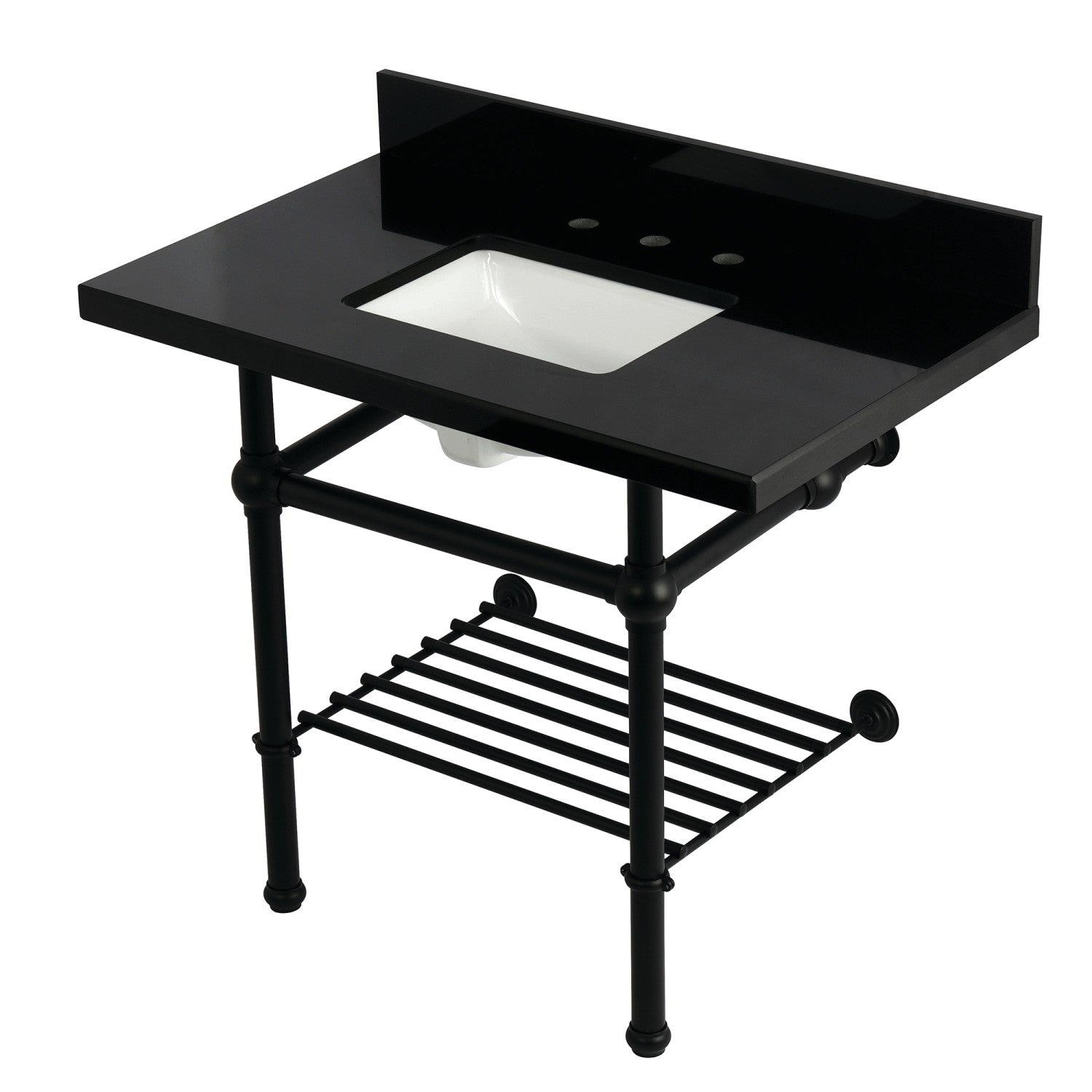 Templeton KVPK3630KBSQB0 36-Inch Console Sink with Brass Legs (8-Inch, 3 Hole), Black Granite/Matte Black
