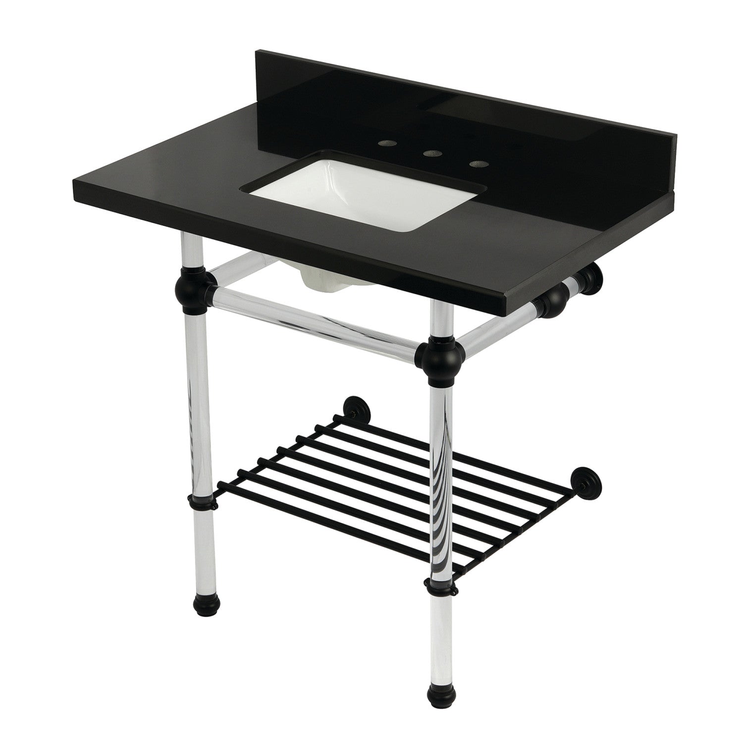 Templeton KVPK36KASQB0 36-Inch Console Sink with Acrylic Legs (8-Inch, 3 Hole), Black Granite/Matte Black