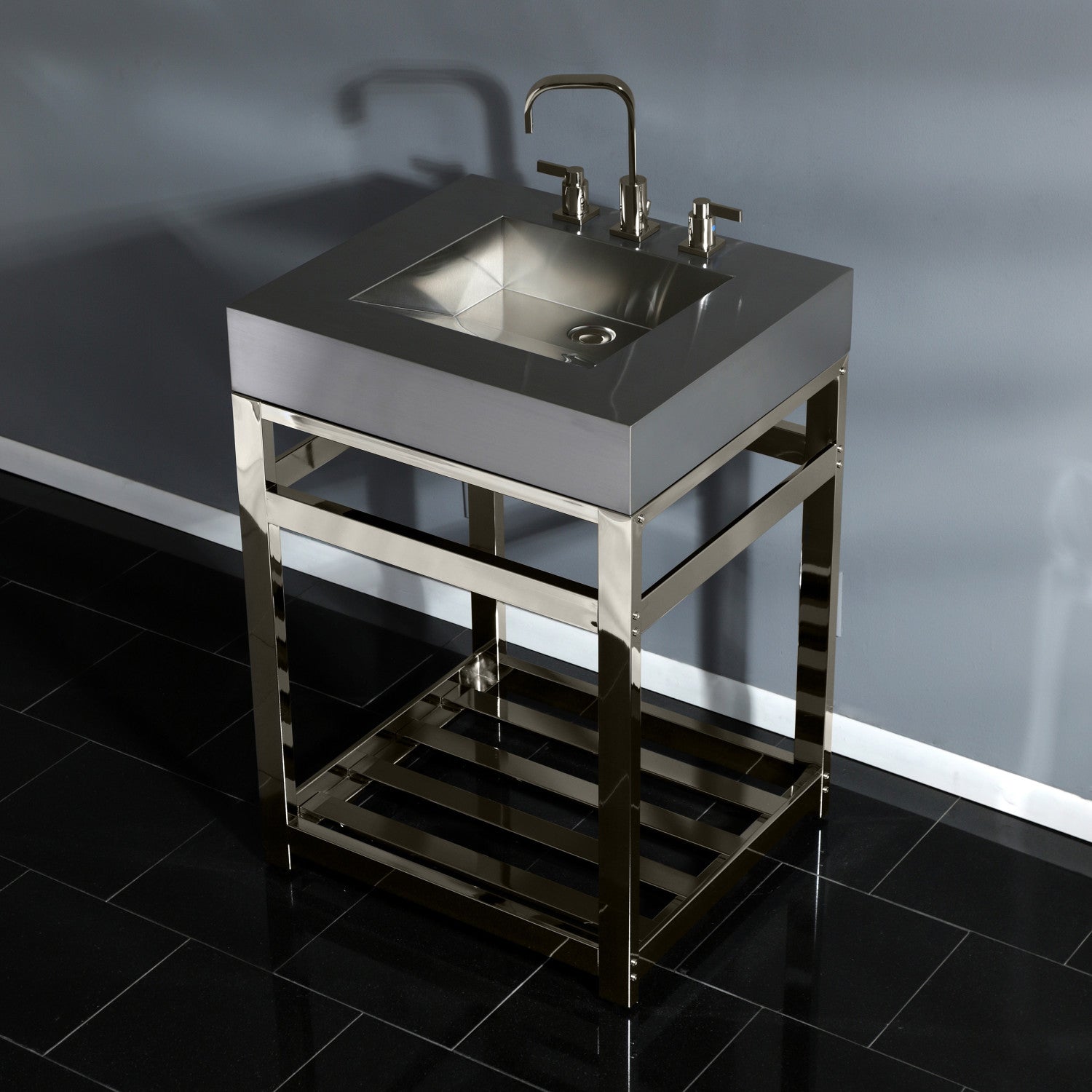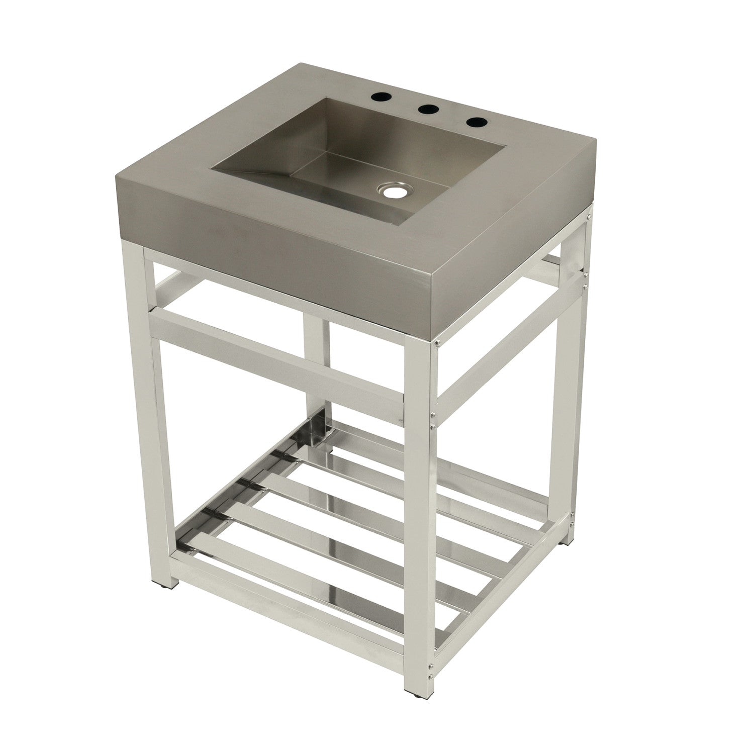 The Kingston Commercial collection brings forth bold design and smooth lines, enhancing your contemporarily styled home. Heavy, durable, and beautiful, this bathroom sink top will give your bathroom a sleek, modern design. Constructed out of stainless steel, this sink top is built for long-lasting durability while offering contemporary stylings. The Kingston Commercial 25" stainless steel console vanity sink features a wash basin and steel base that can be accented with a handful of finish options. With a rust-resistant brushed finish, stainless steel is also resistant to scratches for a long-lasting, durable product. These console vanities will stylishly and effortlessly become a part of your home, completing your modern bathroom ensemble.