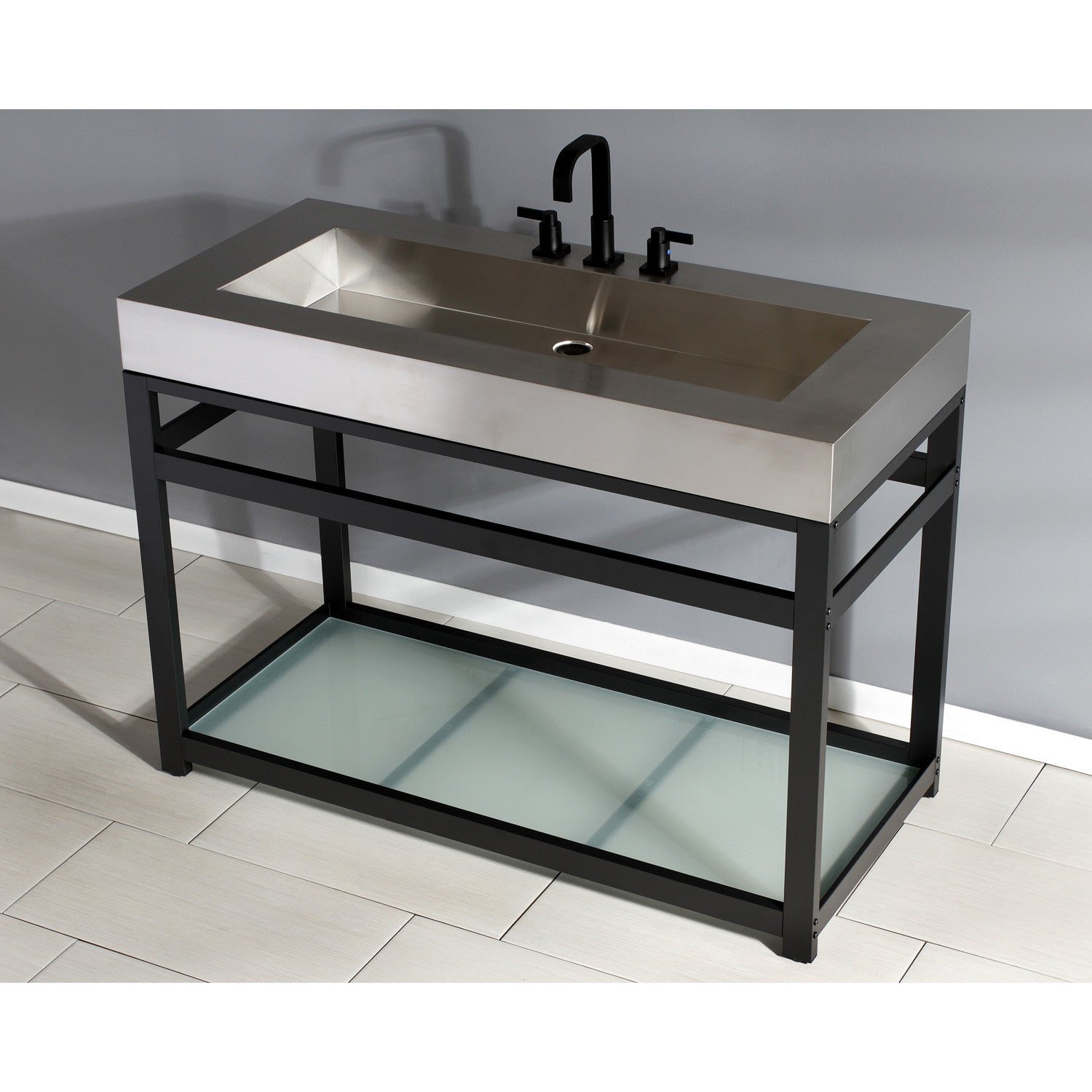 The Kingston Commercial collection brings forth bold design and smooth lines, enhancing your contemporarily styled home. Heavy, durable, and beautiful, this bathroom sink top will give your bathroom a sleek, modern design. Constructed out of stainless steel, this sink top is built for long-lasting durability while offering contemporary stylings. The Kingston Commercial 49" stainless steel console vanity sink features a wash basin and steel base that can be accented with a handful of finish options. With a rust-resistant brushed finish, stainless steel is also resistant to scratches for a long-lasting, durable product. Additionally, this vanity base comes with a tempered glass shelf for added functionality and aesthetic appeal. These console vanities will stylishly and effortlessly become a part of your home, completing your modern bathroom ensemble.