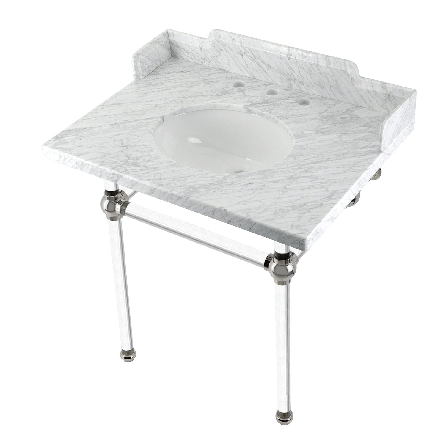Fauceture LMS3030MA6 30-Inch Carrara Marble Console Sink with Acrylic Legs, Marble White/Polished Nickel