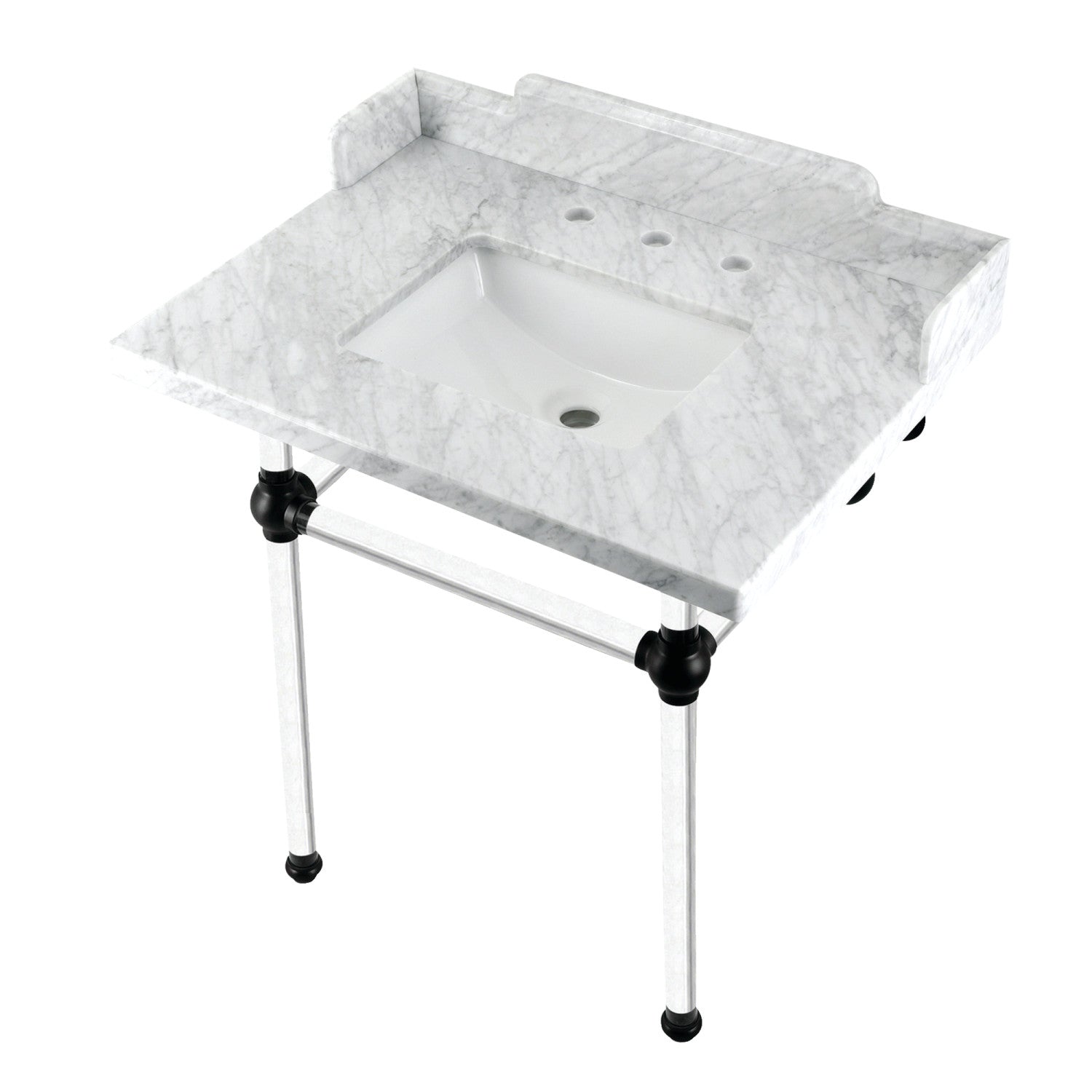 Fauceture LMS3030MASQ0 30-Inch Carrara Marble Console Sink with Acrylic Legs, Marble White/Matte Black