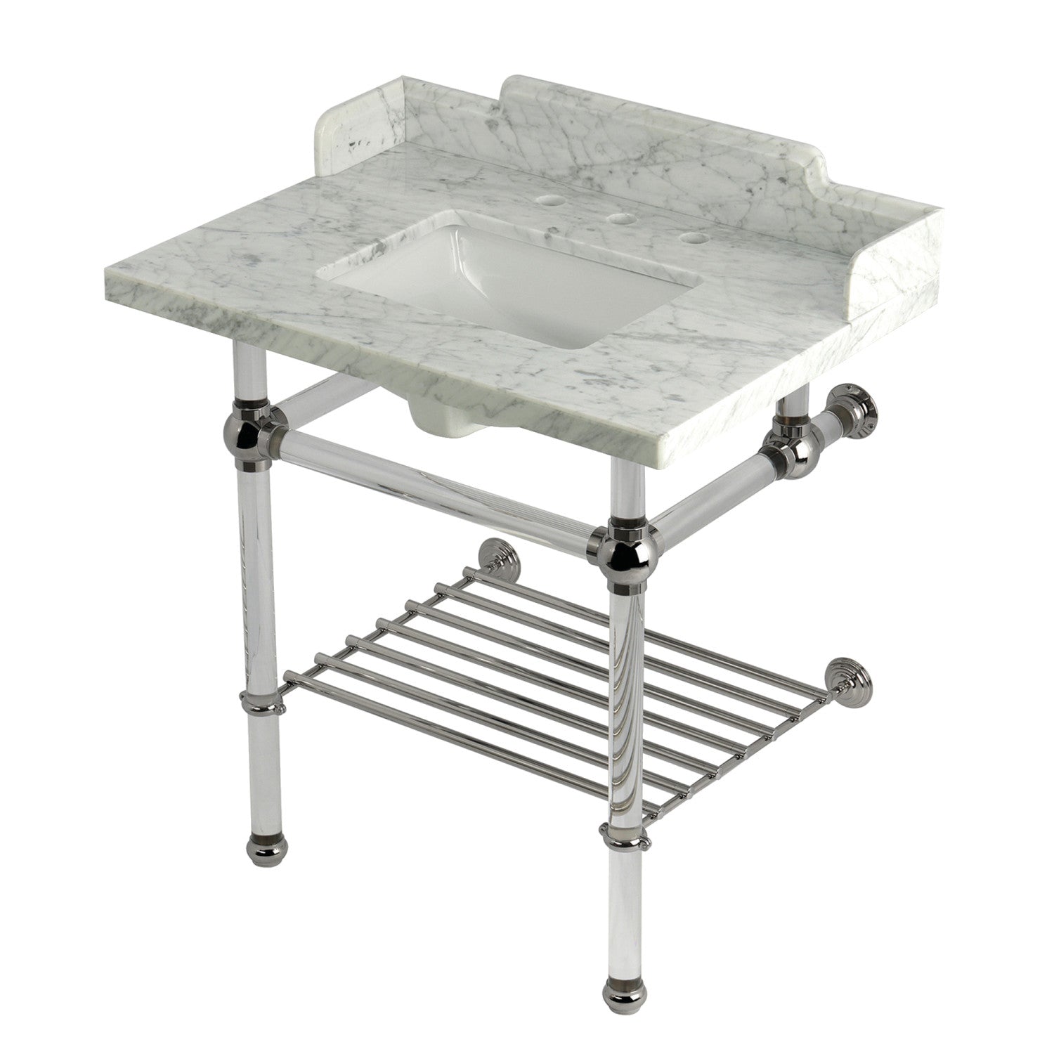 Pemberton LMS3030MASQB6 30-Inch Console Sink with Acrylic Legs (8-Inch, 3 Hole), Marble White/Polished Nickel