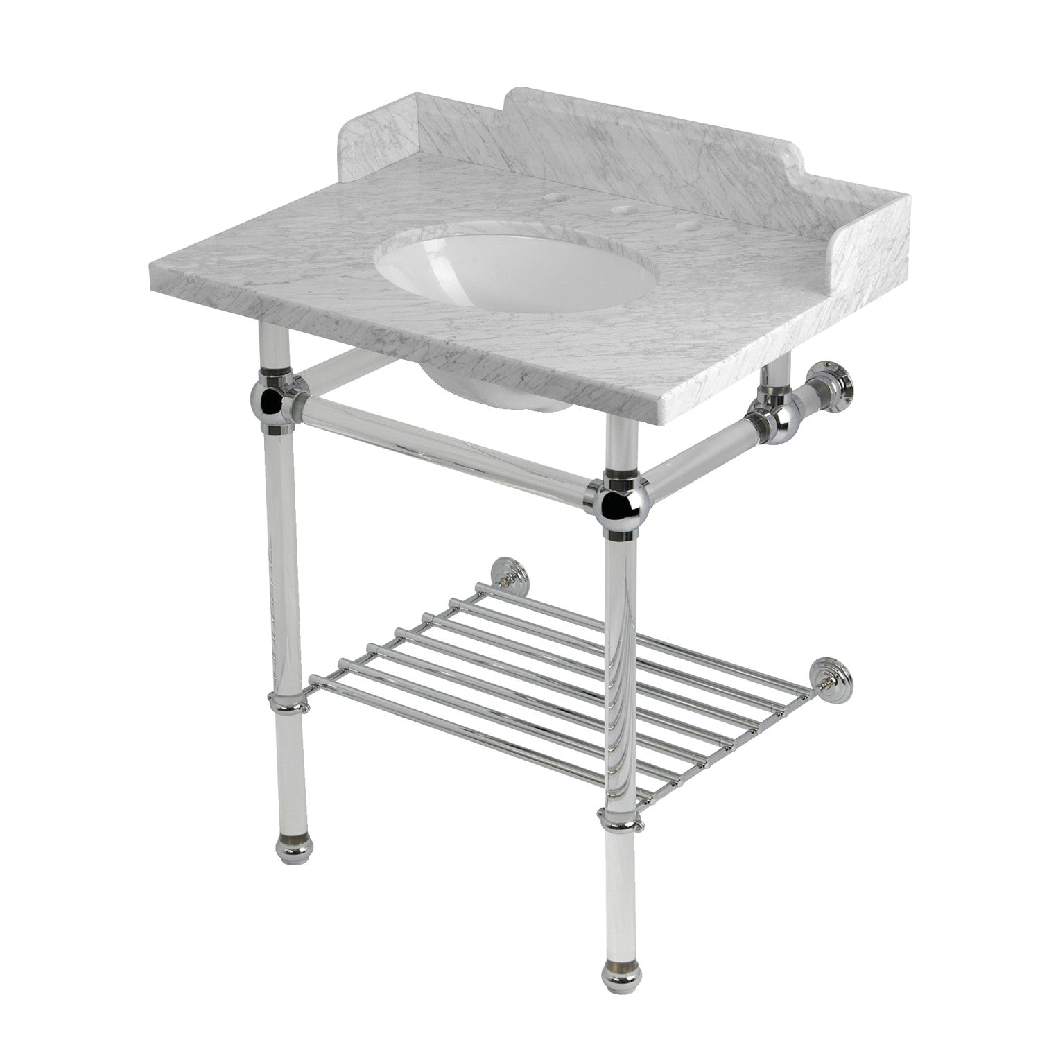 Pemberton LMS30MAB1 30-Inch Console Sink with Acrylic Legs (8-Inch, 3 Hole), Marble White/Polished Chrome
