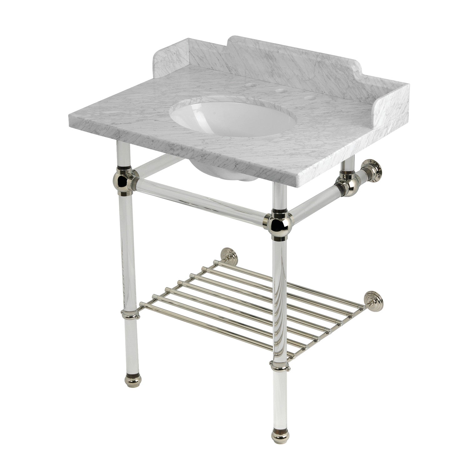 Pemberton LMS30MAB6 30-Inch Console Sink with Acrylic Legs (8-Inch, 3 Hole), Marble White/Polished Nickel