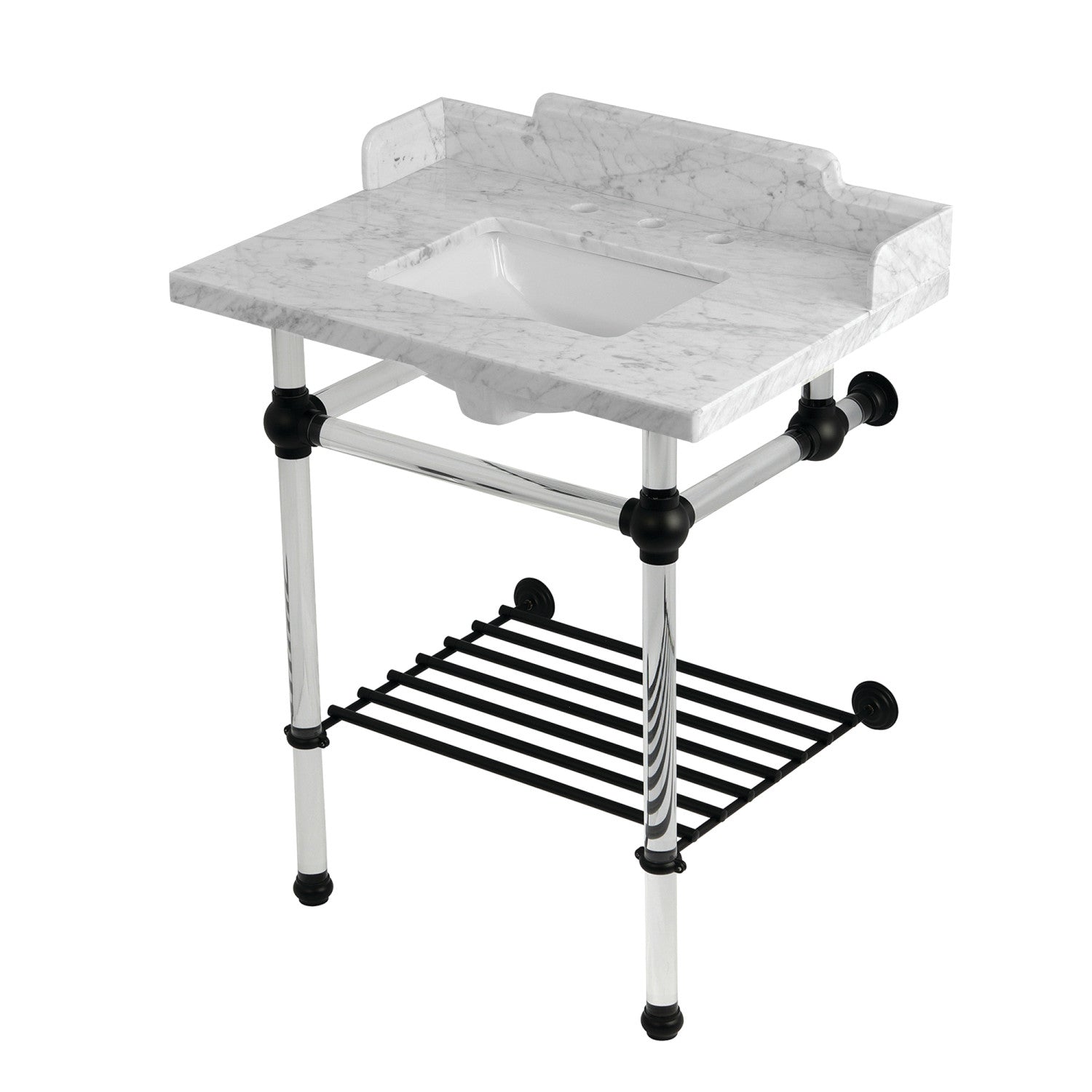 Pemberton LMS30MASQB0 30-Inch Console Sink with Acrylic Legs (8-Inch, 3 Hole), Marble White/Matte Black
