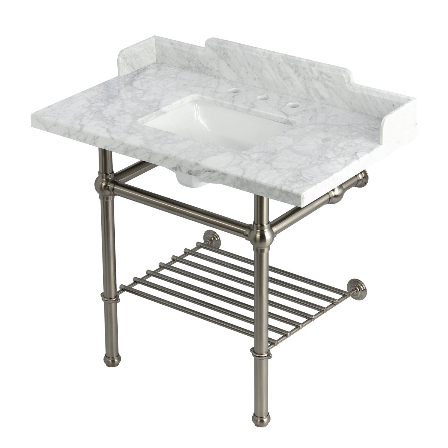 Pemberton LMS3630MBSQB8 36-Inch Console Sink with Brass Legs (8-Inch, 3 Hole), Marble White/Brushed Nickel