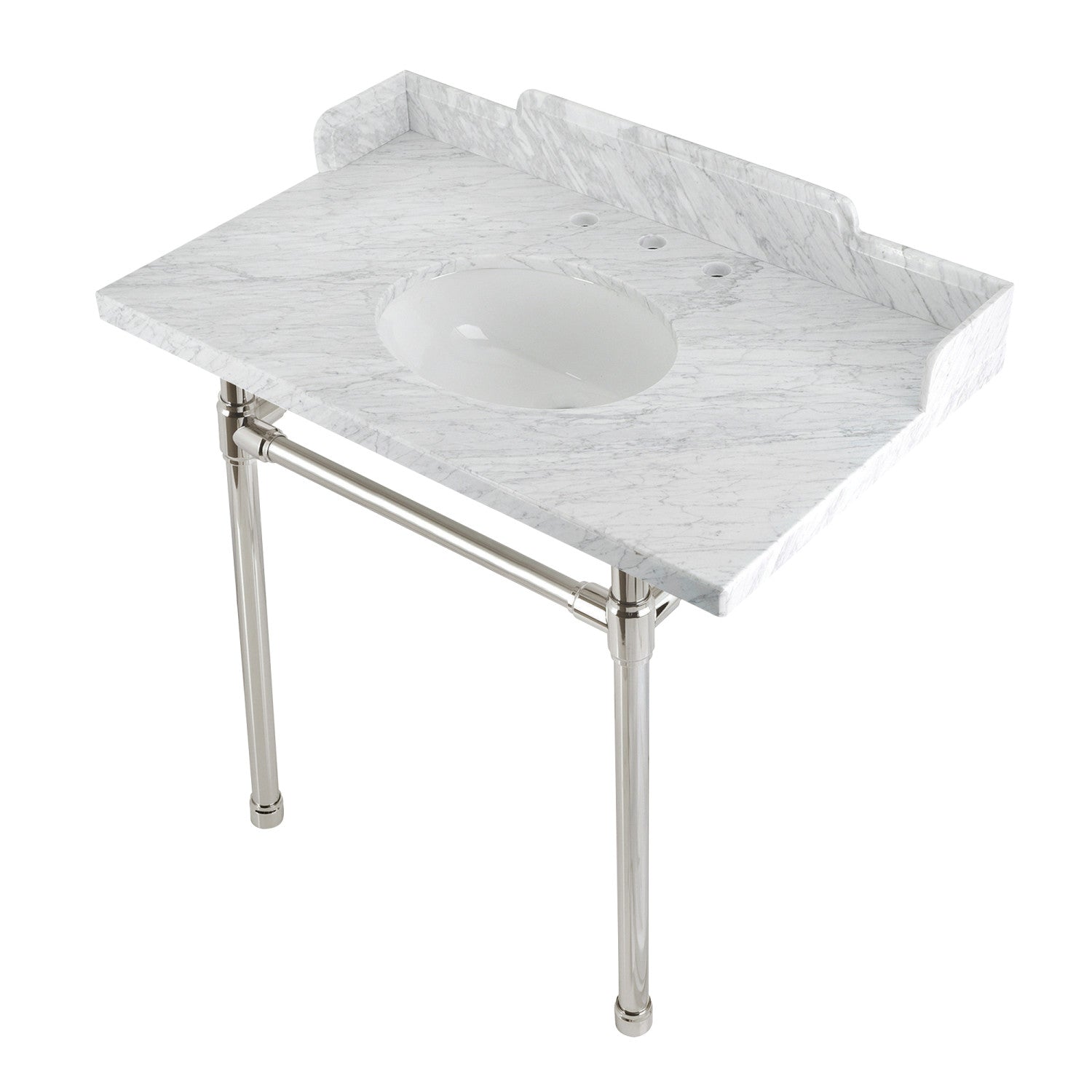 Fauceture LMS36M86ST 36-Inch Carrara Marble Console Sink with Stainless Steel Legs, Marble White/Polished Nickel