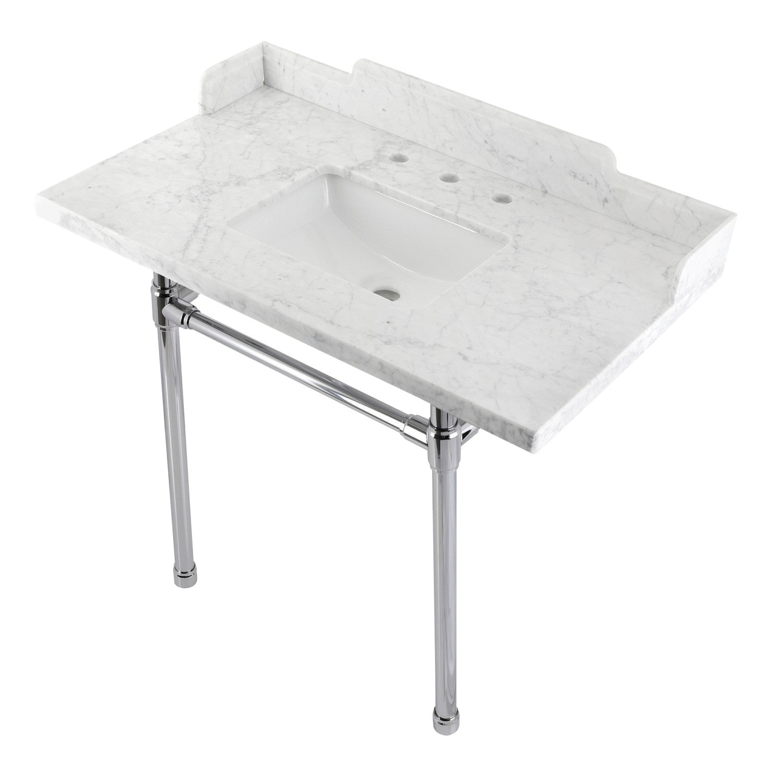 Fauceture LMS36M8SQ1ST 36-Inch Carrara Marble Console Sink with Stainless Steel Legs, Marble White/Polished Chrome