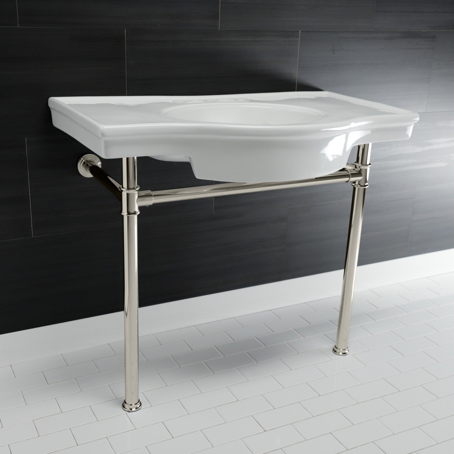 With a beautiful ceramic counter top, this console sink set is a long lasting, durable, and elegant addition to your bathroom. A fabulous alternative where space is limited or tight, making them friendly for the whole family. The pristine, stain-resistant surface and glistening finish make for a very sturdy fixture that is easily maintained. Also for your convenience, anti-slip rubber pads are included with the stainless steel legs to ensure steadiness. Water supply kit, drain assembly, and the faucet are sold separately.