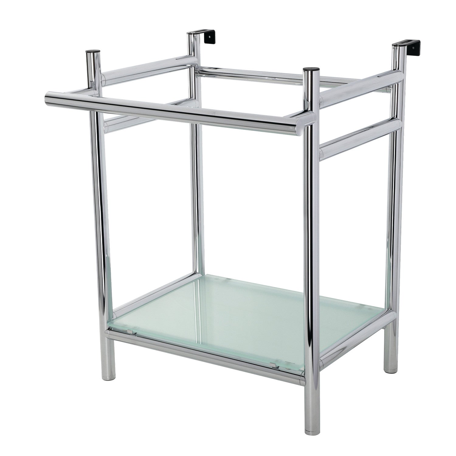 A simple minimalist support for your console sink tops, this sink base comes in a multitude of finishes that will bring out the shine in your bathroom. The Sheridan 22-inch console sink legs is constructed out of stainless steel and is designed for durability and reliability to last for years to come. This console sink legs includes tempered glass storage shelf and 24" front towel bar for your convenience. Pair these legs with a console top, available in multiple materials.