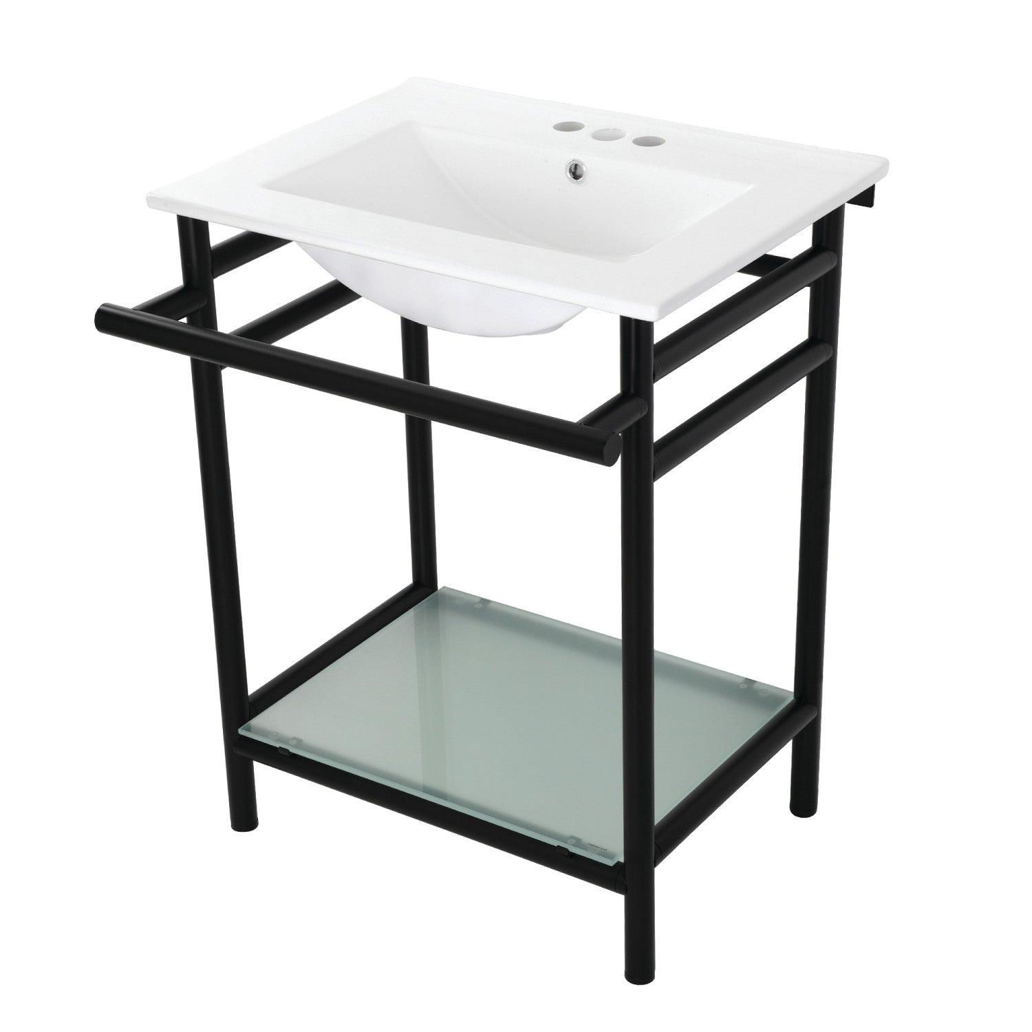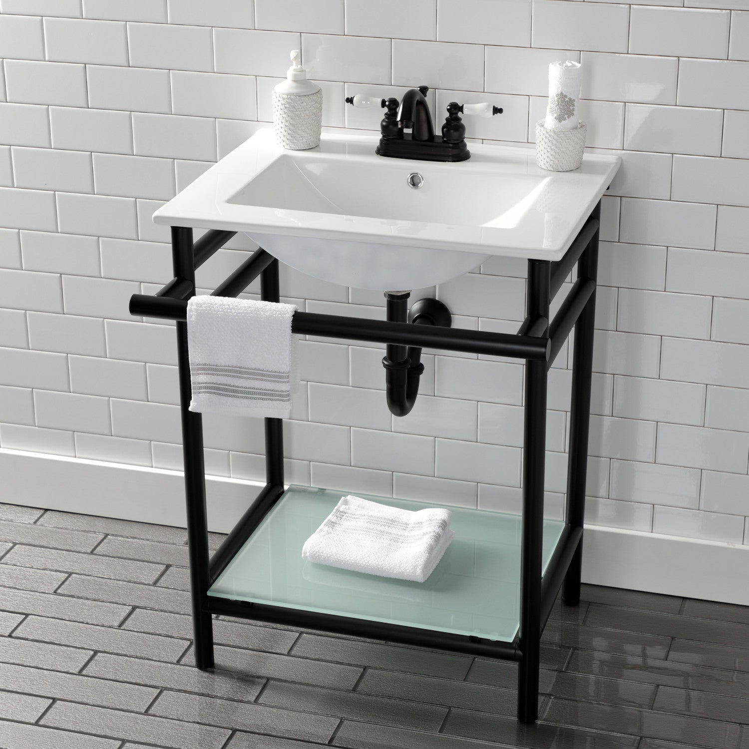 Fauceture VPB24187W40 24-Inch Ceramic Console Sink Set, White/Matte Black