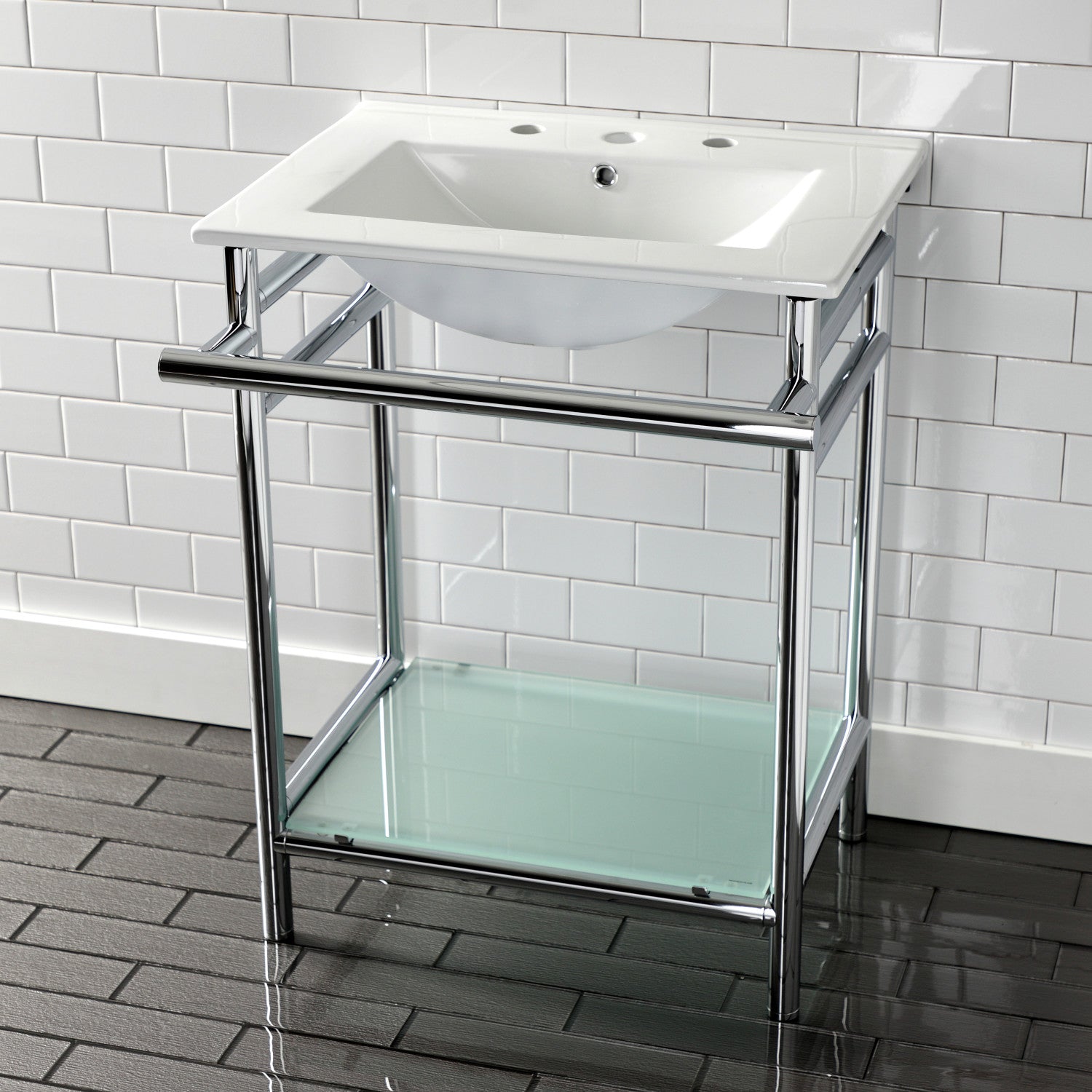 Fauceture VPB24187W81 24-Inch Ceramic Console Sink Set, White/Polished Chrome