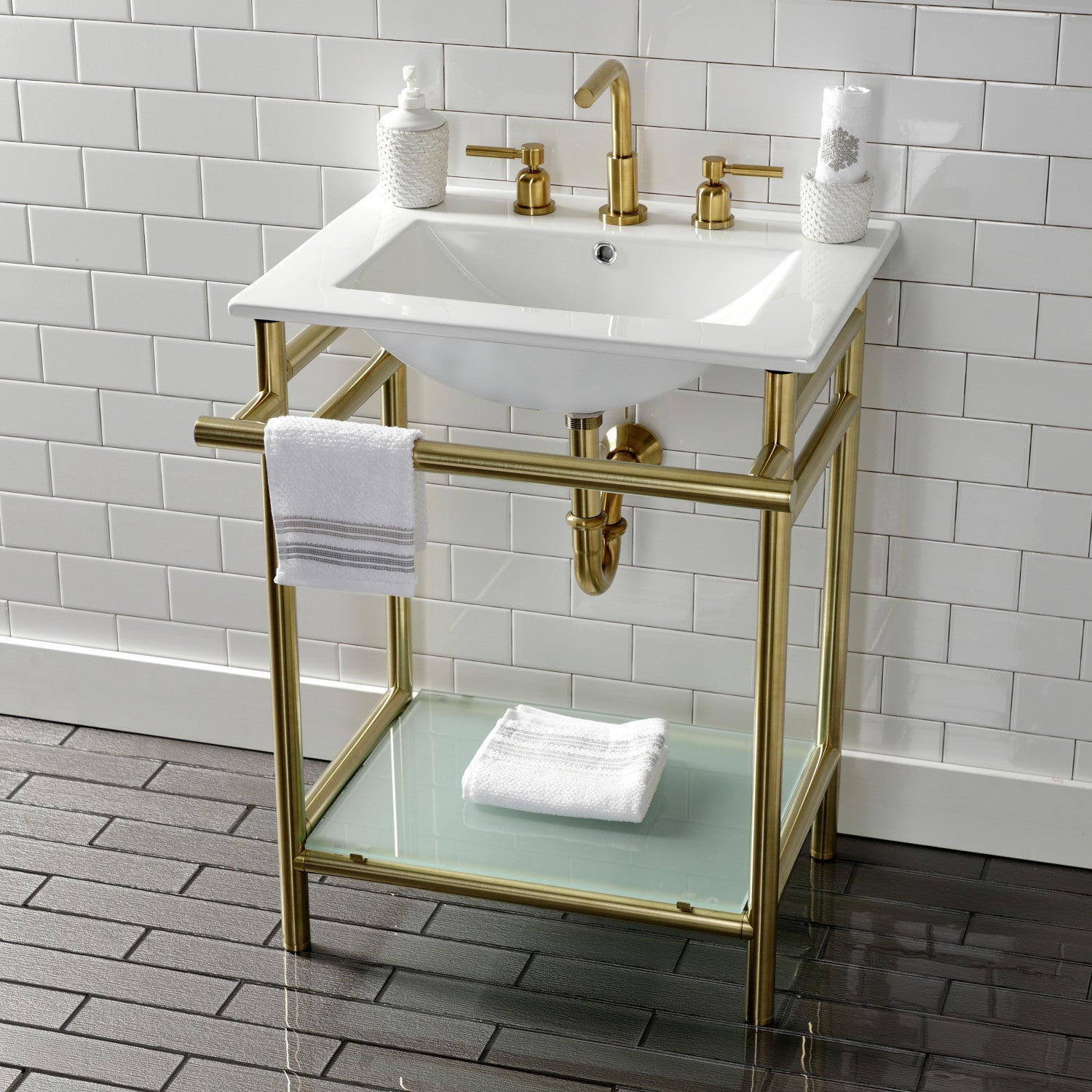 Fauceture VPB24187W87 24-Inch Ceramic Console Sink Set, White/Brushed Brass