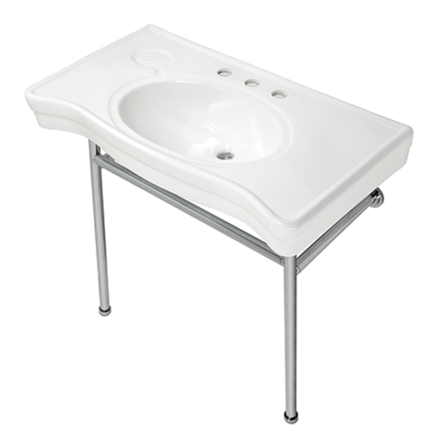 With a beautiful ceramic counter top, this console sink set is a long lasting, durable, and elegant addition to your bathroom. A fabulous alternative where space is limited or tight, making them friendly for the whole family. The pristine, stain-resistant surface and glistening finish make for a very sturdy fixture that is easily maintained. Also for your convenience, anti-slip rubber pads are included with the stainless steel legs to ensure steadiness. Water supply kit, drain assembly, and the faucet are sold separately.