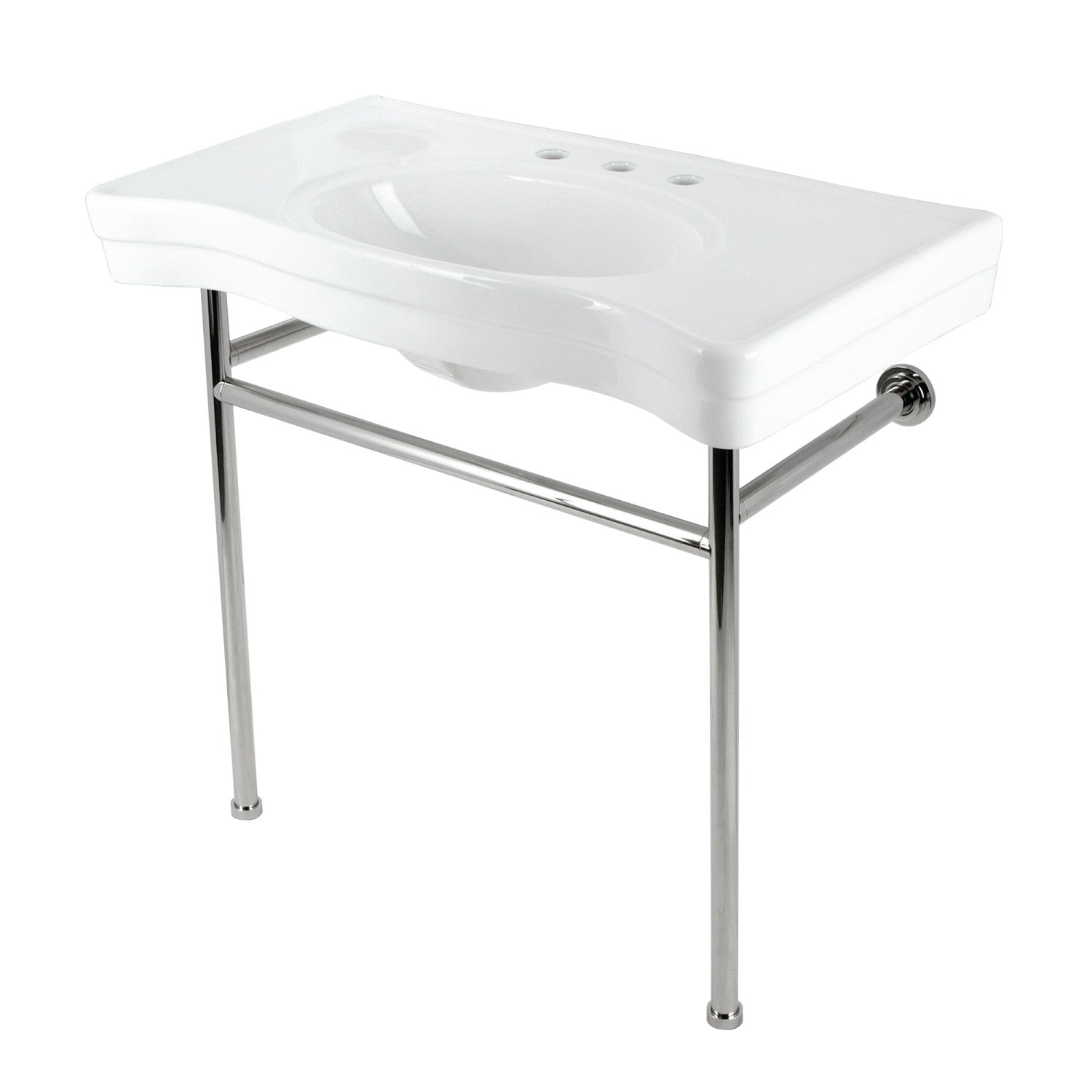 Bristol VPB28140W86 36-Inch Console Sink with Stainless Steel Legs (8-Inch, 3 Hole), White/Polished Nickel