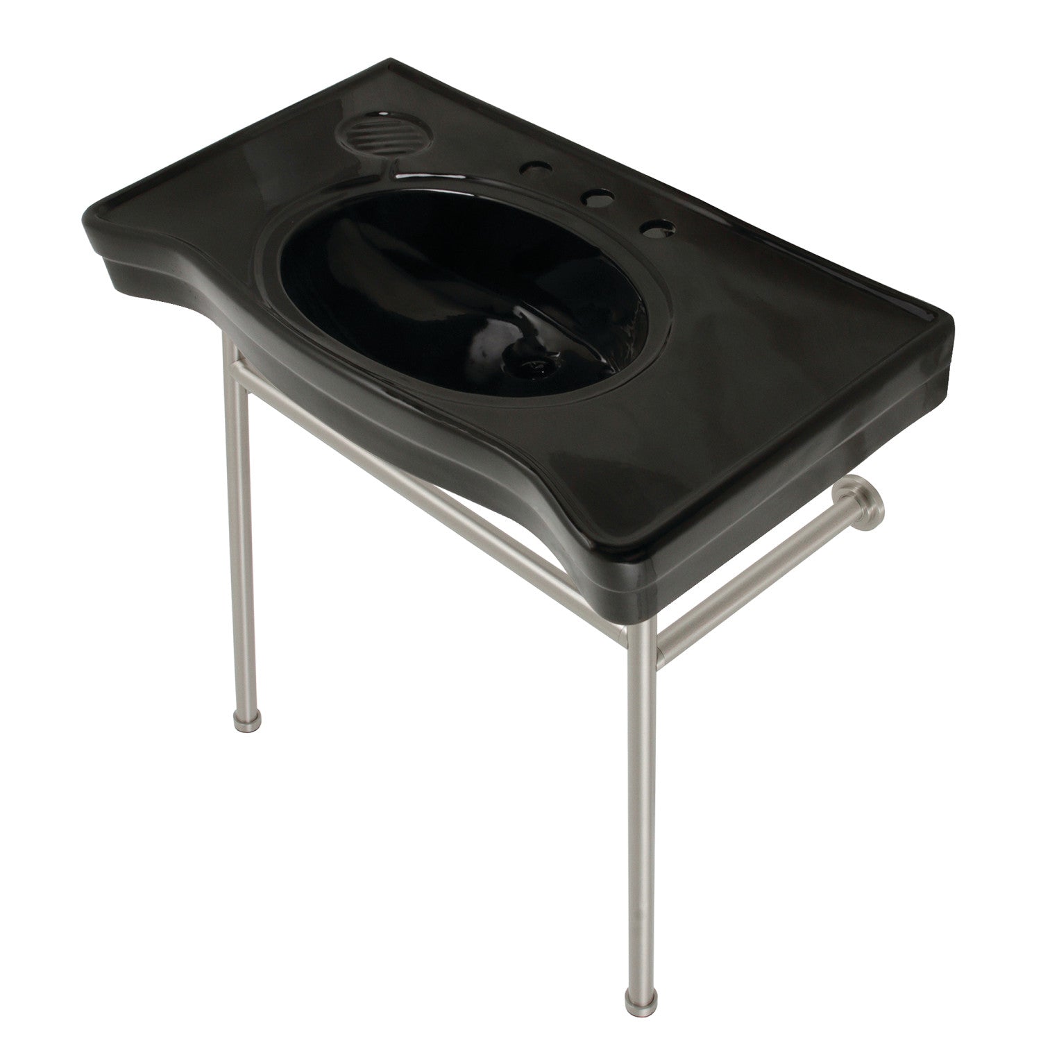 Bristol VPB28140W88K 36-Inch Console Sink with Stainless Steel Legs (8-Inch, 3 Hole), Black/Brushed Nickel