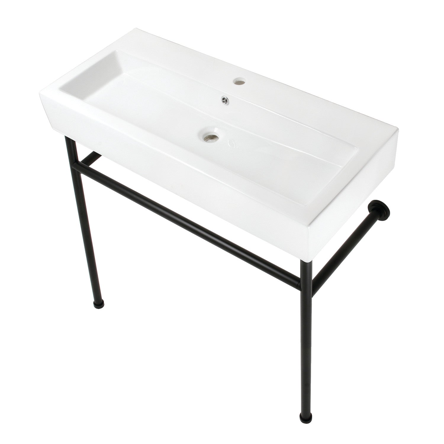 New Haven VPB39170ST 39-Inch Console Sink with Stainless Steel Legs (Single Hole), White/Matte Black