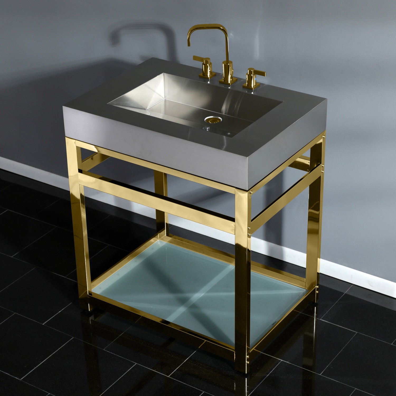 Kingston Commercial VSP3122B2 Steel Console Sink Base with Glass Shelf, Polished Brass