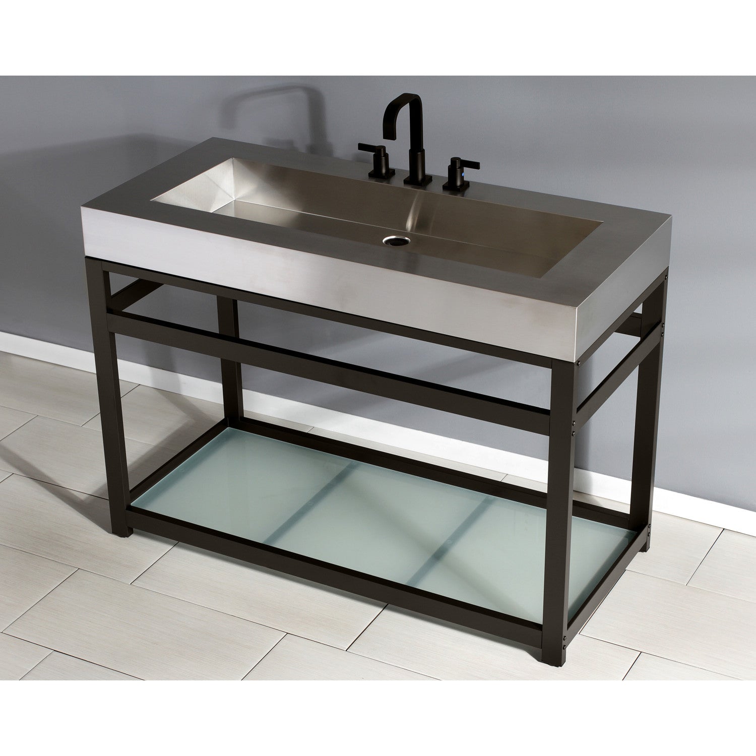 The Kingston Commercial collection brings forth bold design and smooth lines, enhancing your contemporarily styled home. A simple minimalist support for your console vanity sink tops, this sink base comes in a multitude of finishes that will bring out the shine in your bathroom. Additionally, the included tempered glass shelf adds functionality and aesthetic appeal. These console vanity bases will stylishly and effortlessly become a part of your home, completing your bathroom ensemble.