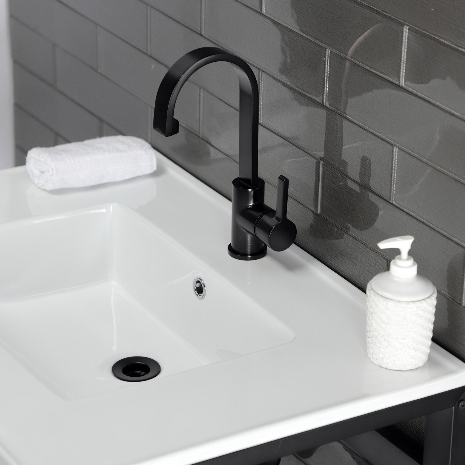 Fauceture VWP3122A0 31-Inch Ceramic Console Sink Set, White/Matte Black