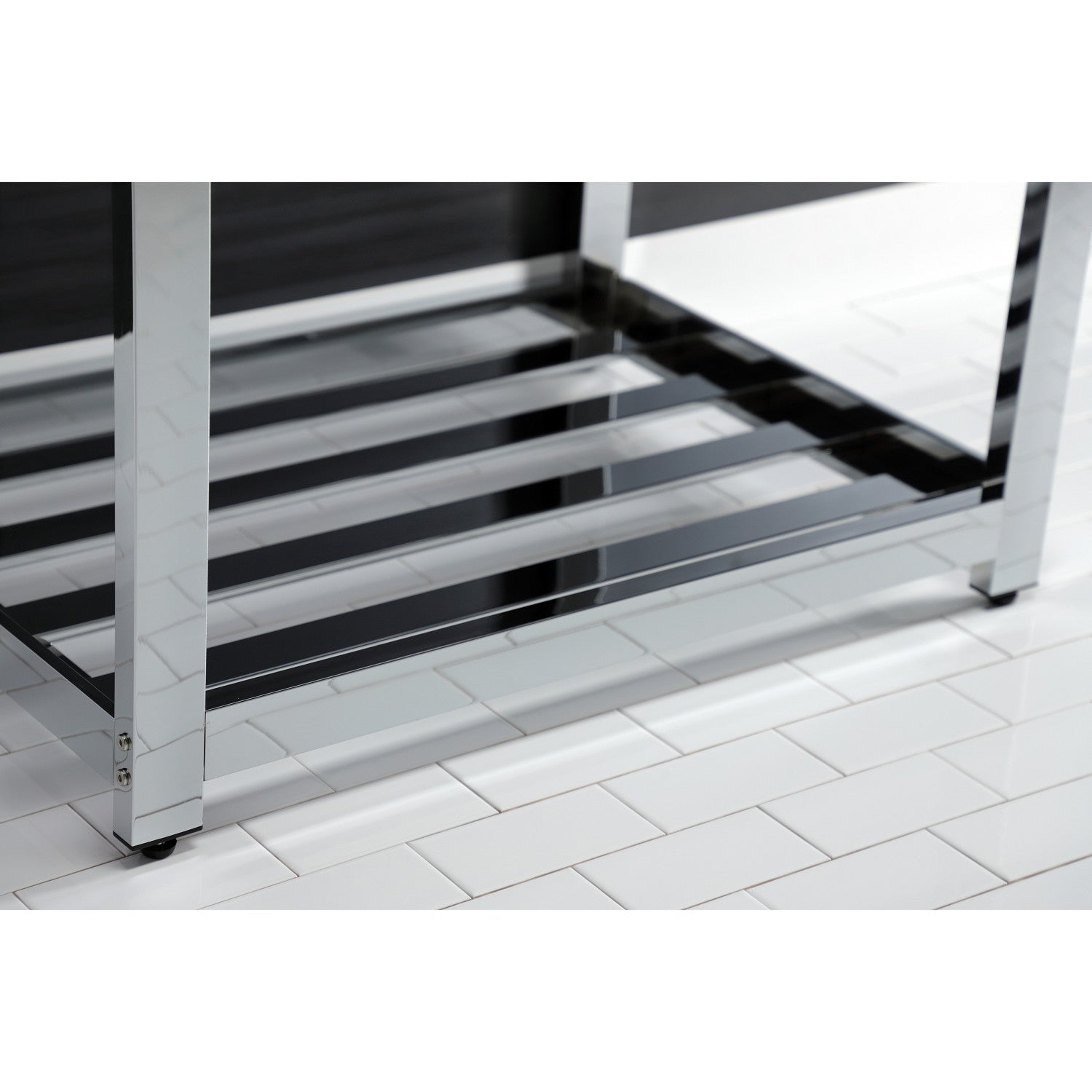 Exquisitely styled for your contemporary taste, this console sink will enhance your bathroom living space. With a beautiful ceramic counter top, this console sink set is a long lasting, durable, and elegant addition to your bathroom. The Kingston Brass 31-inch ceramic console sink (8-inch, 3-hole) features a wash basin and steel base that is available in a handful of finish options. Solid ceramic sinks and tops like the LBT-series top in this listing are finished with a glossy glaze on the top and sink basin interior, making for a pristine, stain-resistant surface and glistening finish that is easily maintained. The underside and basin exterior are unglazed/unfinished and coated with a matte white protective sealant that prevents moisture absorption and staining. Solid ceramic pieces cannot be glazed on all sides, because the nature of ceramic material requires a minimum surface area be left raw during the glaze firing process so the piece does not explode. Water supply kit, drain assembly, and the faucet are sold separately.