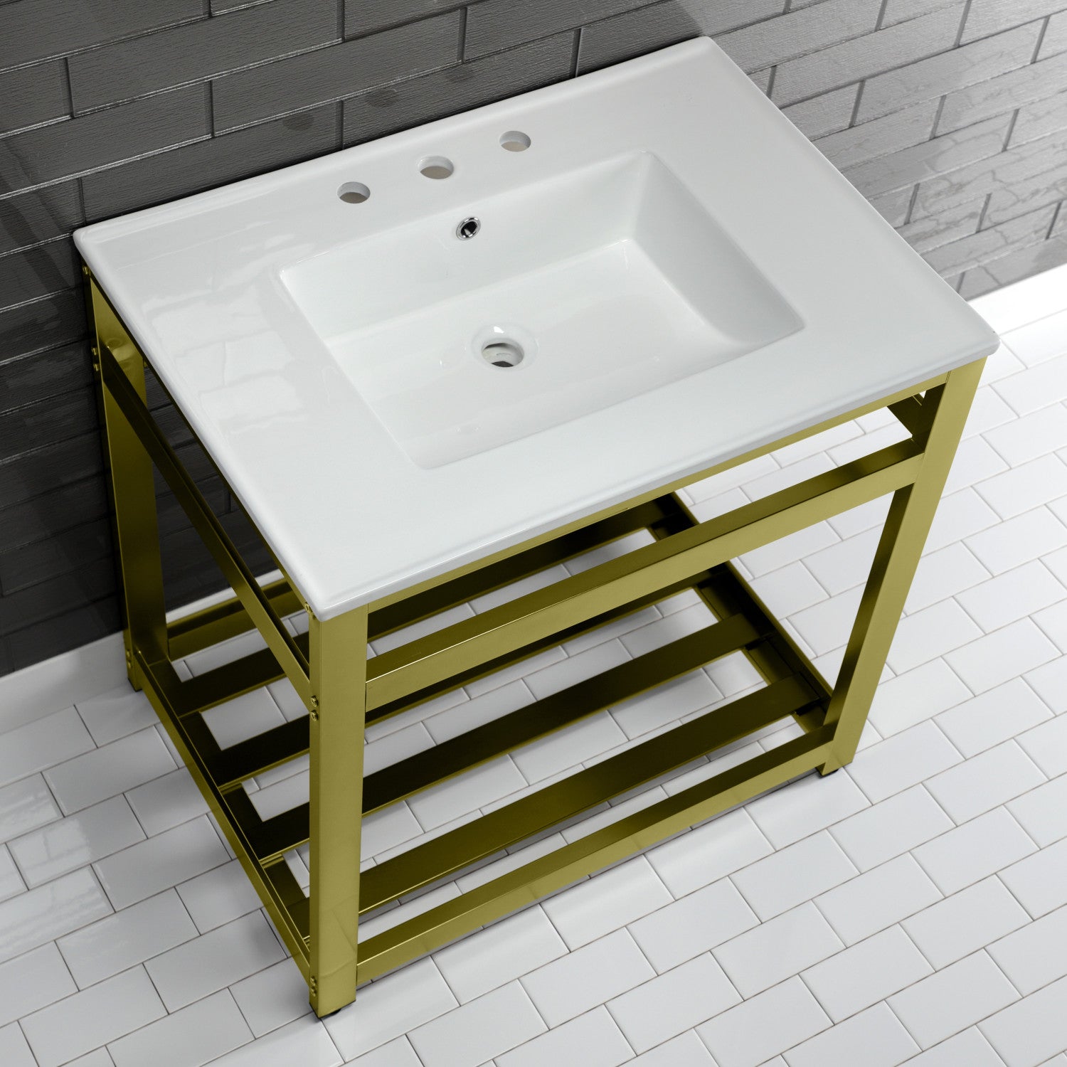 Fauceture VWP3122W8A7 31-Inch Ceramic Console Sink Set, White/Brushed Brass