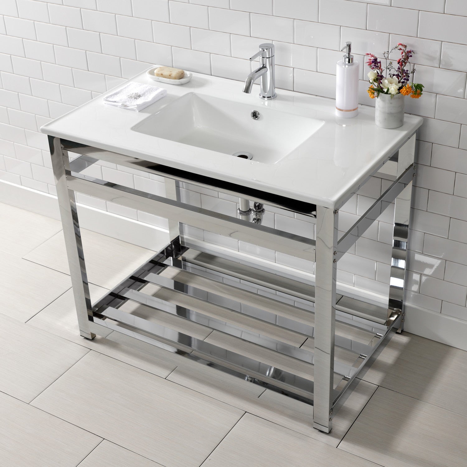 Quadras VWP3722A1 37-Inch Ceramic Console Sink Set, White/Polished Chrome