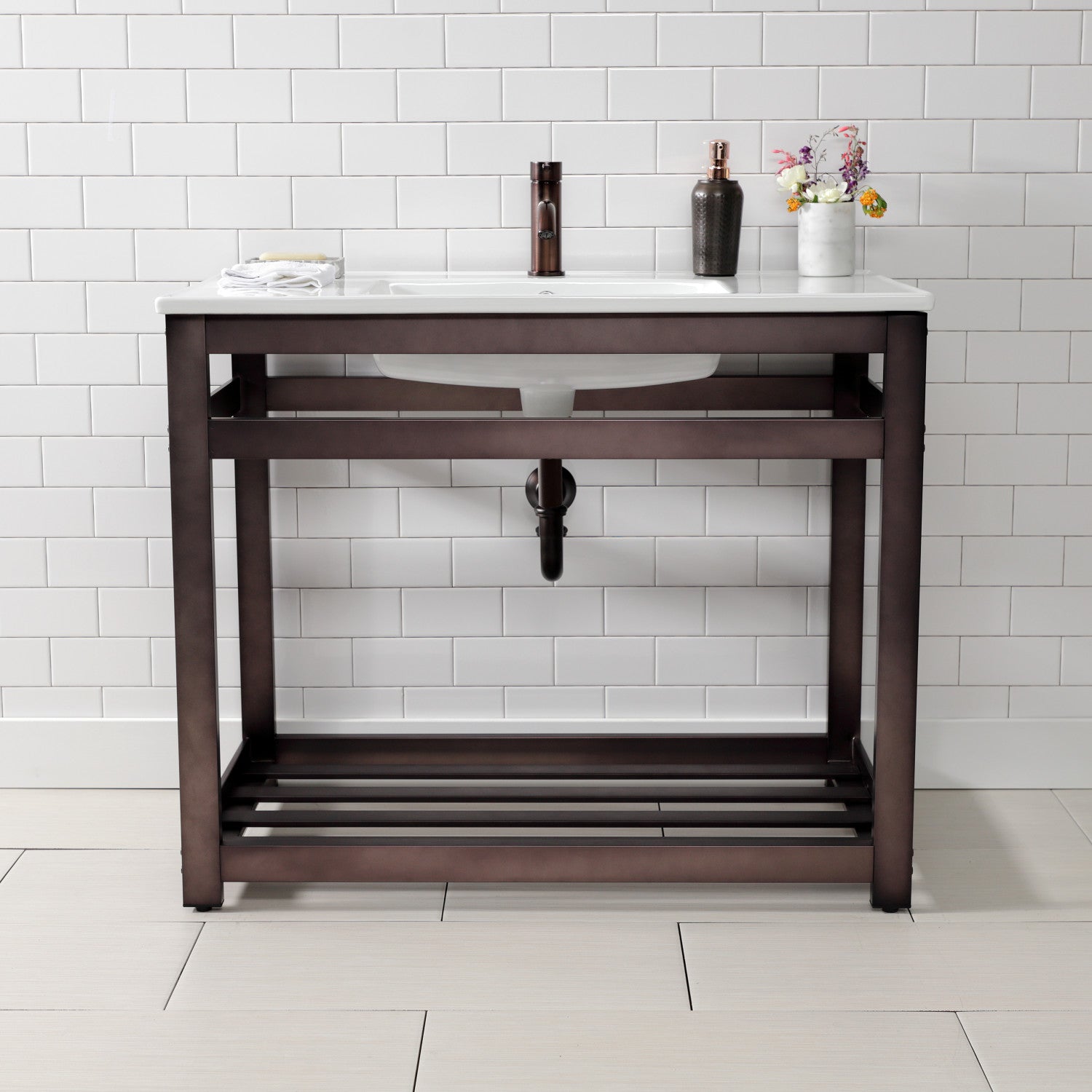 - Includes steel console sink base