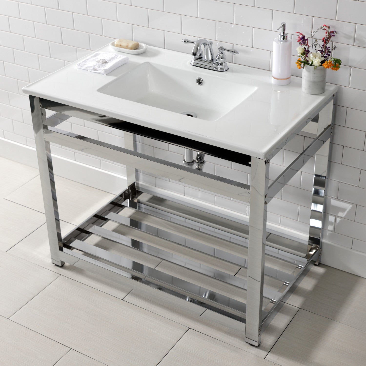 Quadras VWP3722W4A1 37-Inch Ceramic Console Sink Set, White/Polished Chrome