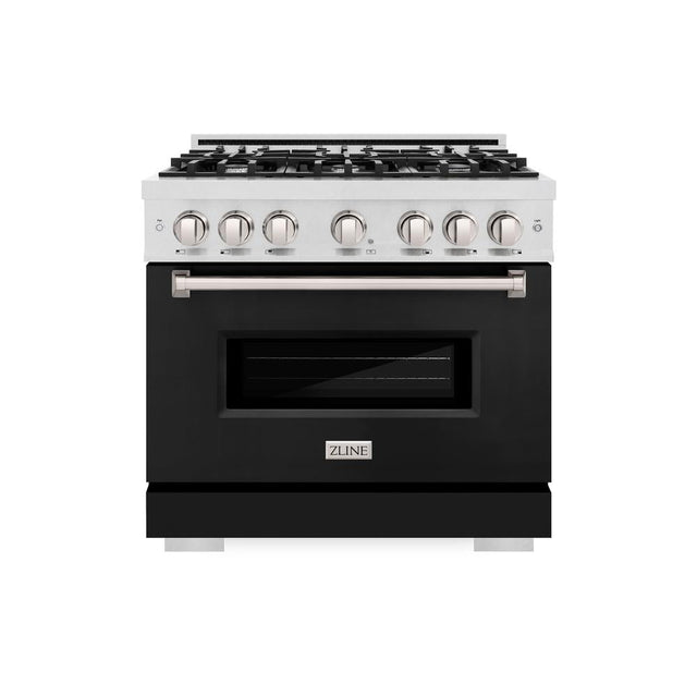 ZLINE 36 in. 5.2 cu. ft. Classic Gas Range with 6 Burner Cooktop and Convection Gas Oven in DuraSnow® Stainless Steel with Black Matte Door (CGRS-BLM-36)