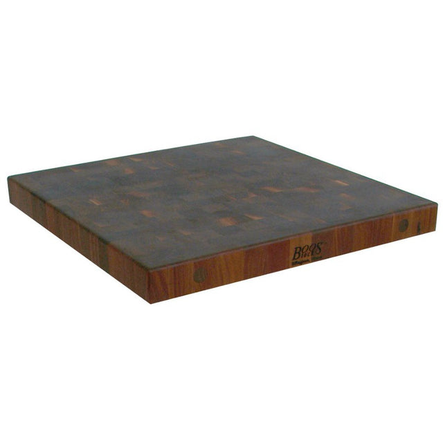 These butcher block countertops are made in the USA by John Boos & Co. Black Walnut is a top-selling North American hardwood, renowned for its dark and rich colors that add warmth to rooms. End-grain butcher blocks are constructed by thermo-bonding together short strips of wood standing on their ends and arranged in a grid pattern. The result is a block surface that resembles a checkerboard and displays a variety of colors and grain patterns. These particular counter tops are 3 inches thick, 38 inches wide, 60 inches long, and finished with a coating of food-safe natural oil, making it safe to be cut upon. The firous ends of the sawed wood pieces make for a resilient cutting surface that's able to absorb knife blades without dulling them prematurely. WALNUT BB ISLAND TOP 60X38X3 CRM