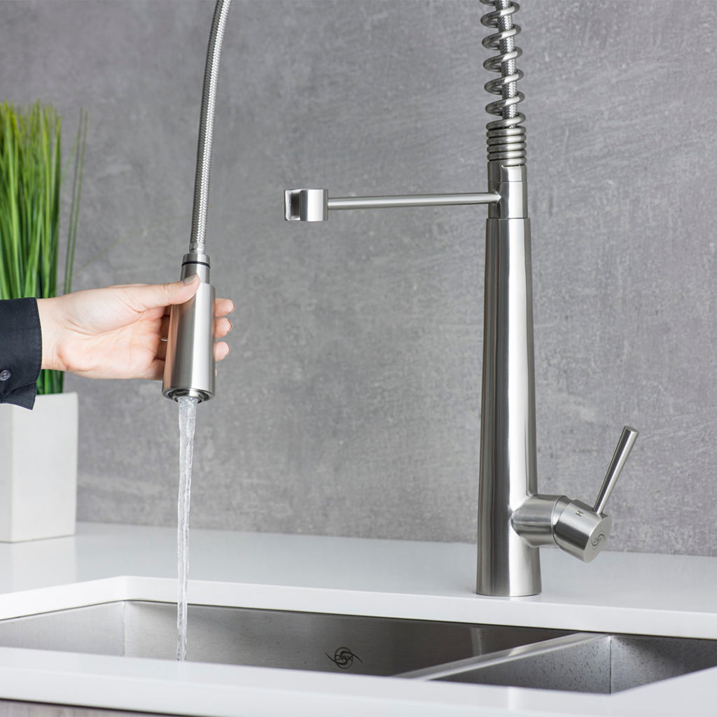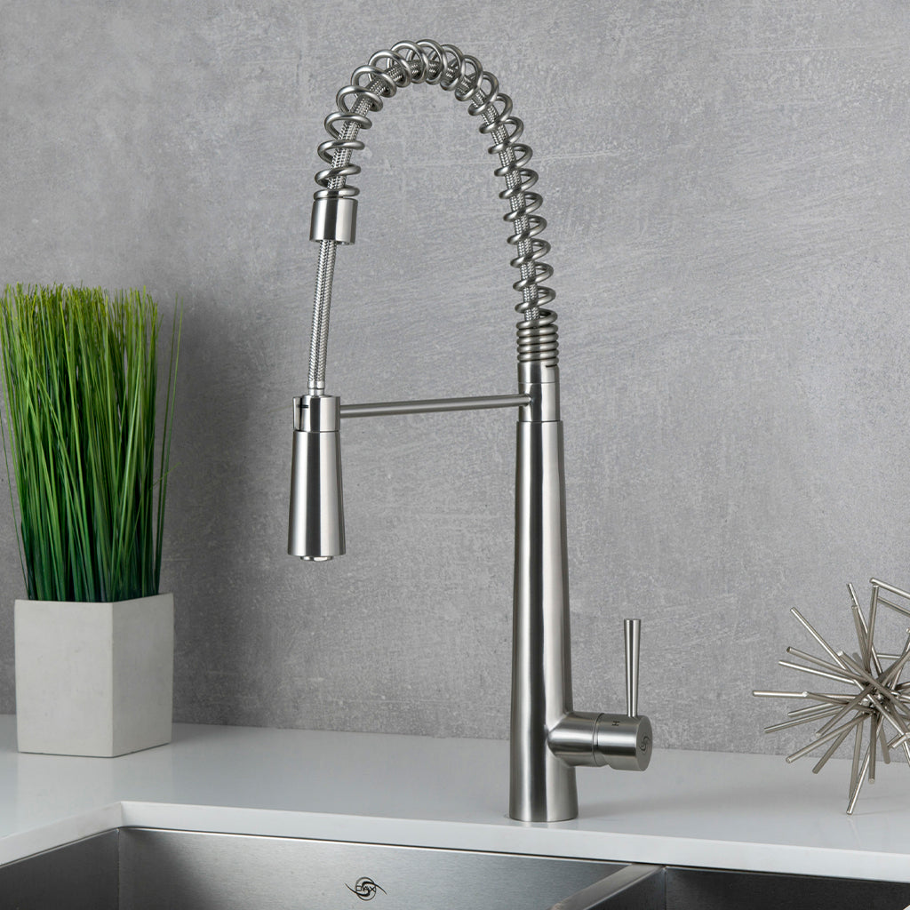 DAX Stainless Steel Single Handle Pull Down Kitchen Faucet, Brushed Stainless Steel DAX-001-03