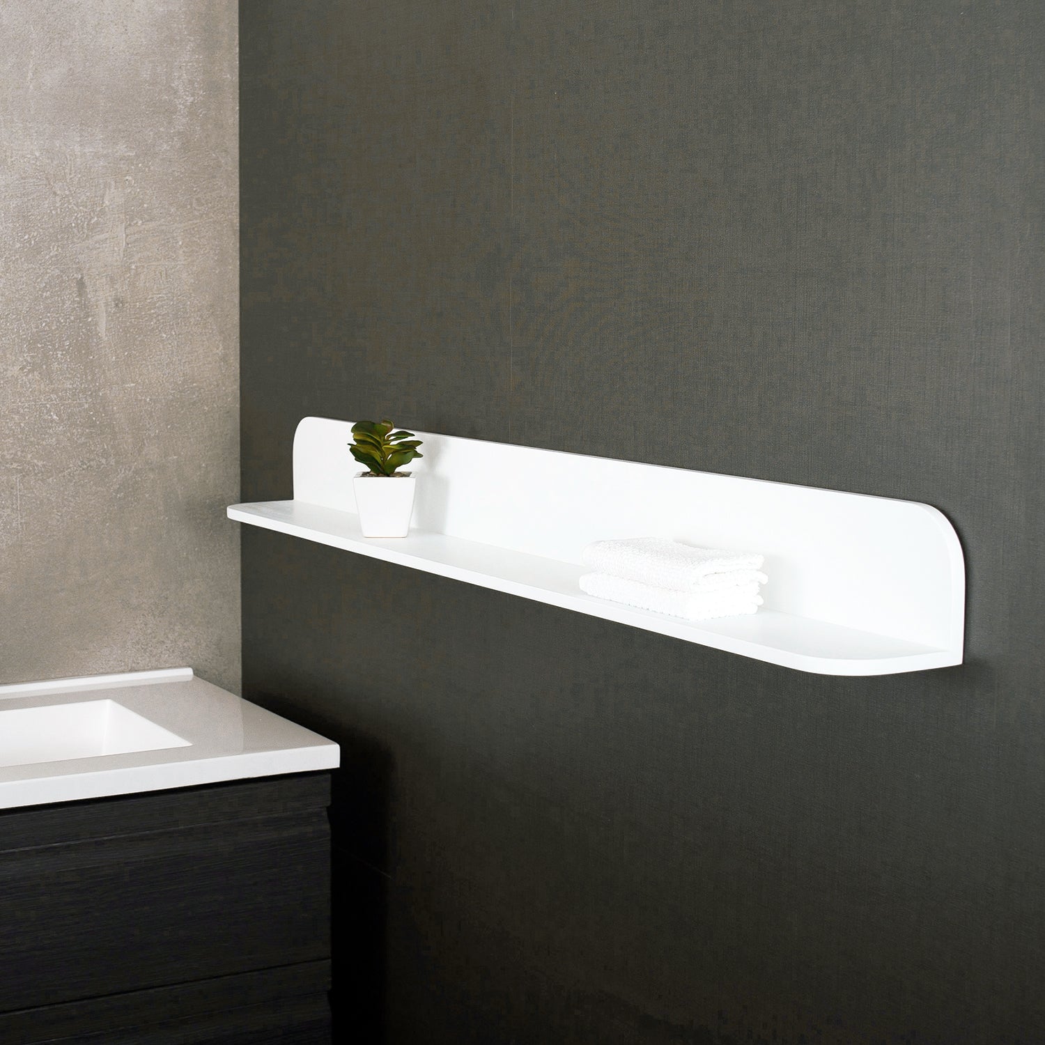 Revamp your bathroom with our DAX Shelves Solid Surface. Crafted from a solid surface material, it guarantees both durability and moisture resistance, perfect for the demanding bathroom environment. Designed for wall mounting, it not only saves precious floor space but also infuses a modern and open ambiance into your bathroom. Hypoallergenic and accommodating for sensitive individuals, thanks to its solid surface material. We've included all the essential mounting parts for a hassle-free installation. The matte white finish adds a sleek, contemporary aesthetic to your bathroom decor, making this vanity a stylish and functional choice for your bathroom upgrade.