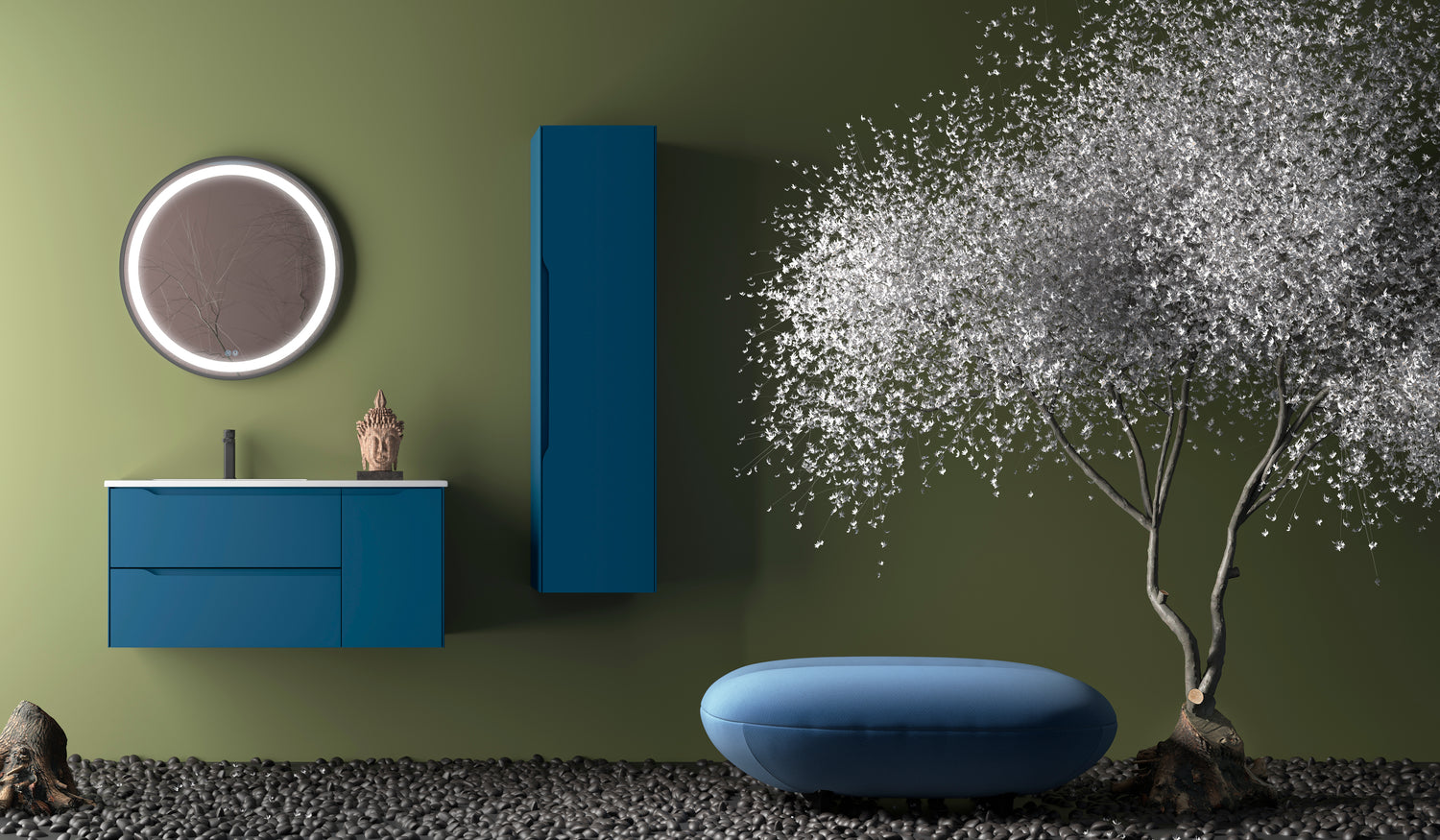 DAX Cenit Single Vanity Cabinet with 2 Drawers and 1 Door, 32", Matte Blue DAX-CEN023221