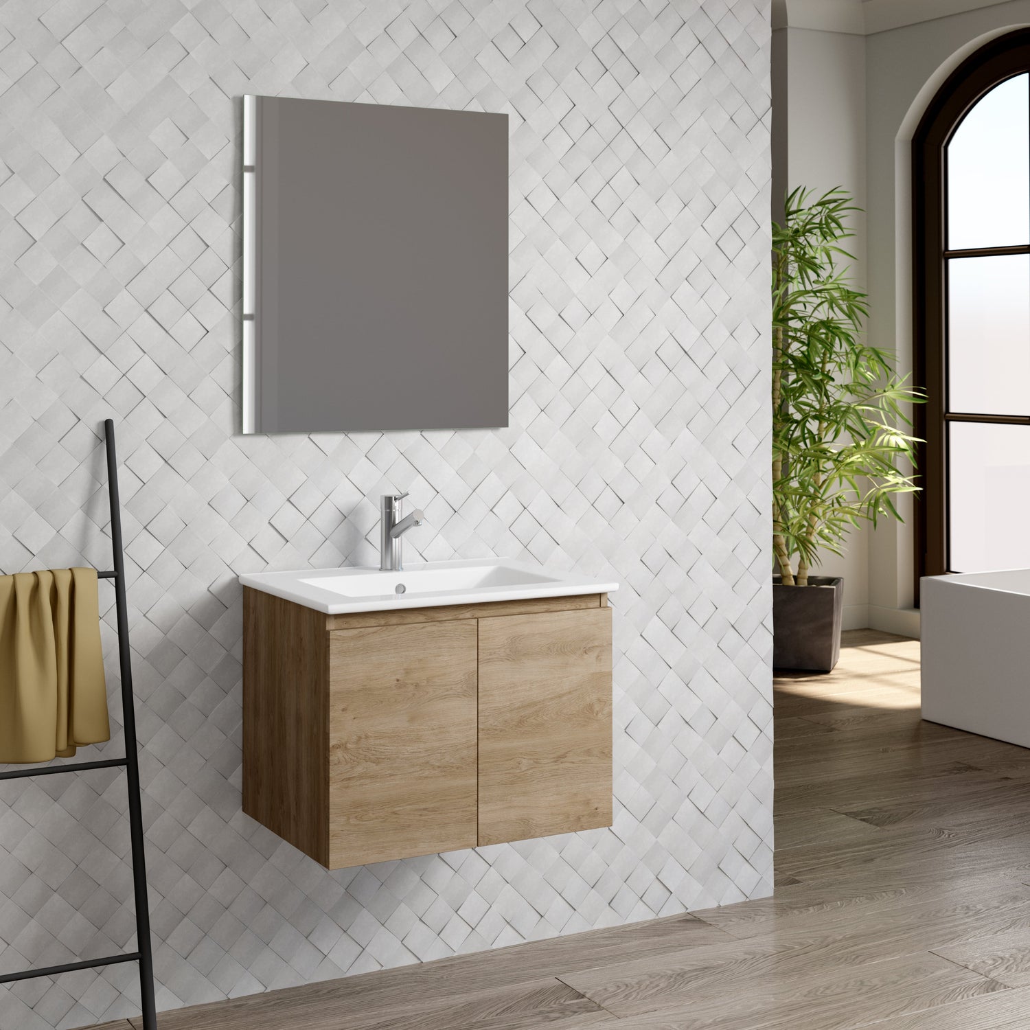 DAX Malibu Engineered Wood and Porcelain Onix Basin with Vanity Cabinet, 24", Oak DAX-MAL012414-ONX