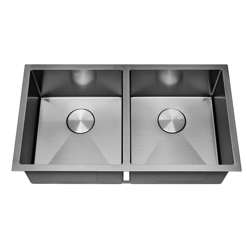 DAX Stainless Steel Handmade Nanometre Double Bowl Undermount Kitchen Sink, Black DAX-NB3218-R10-X